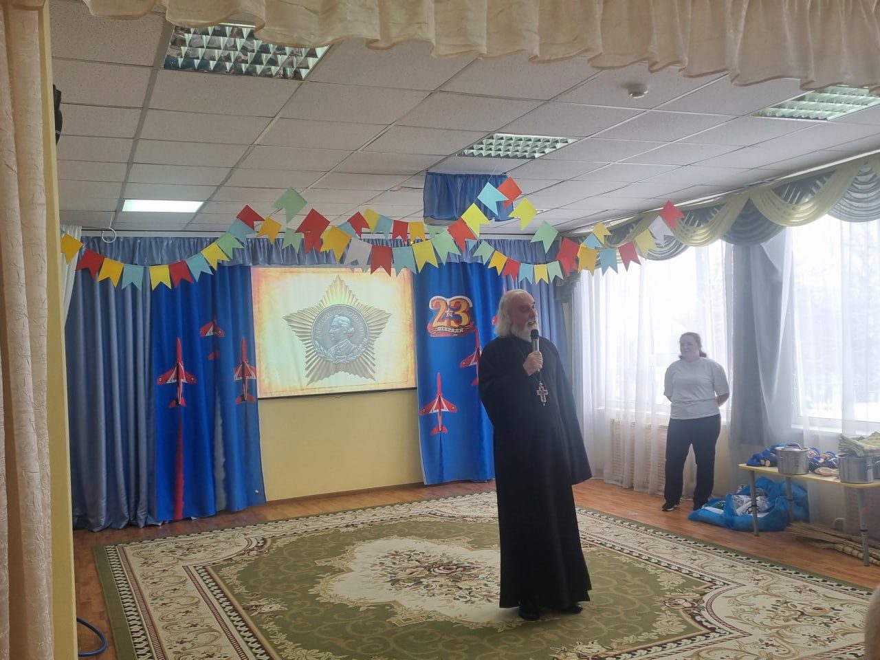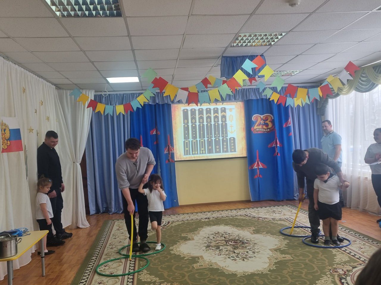 20 февраля в МОУ «Костровская» СОШ дошкольное отделение 1-51, в рамках предстоящего празднования Дня защитника Отечества, в старшей логопедической группе прошел музыкально-спортивный праздник. В конкурсах и эстафетах вместе с дошкольниками активное участие принимали папы. Настоятель Никольского храма д. Мансурово протоиерей Вадим Сорокин был гостем мероприятия. Священнослужитель поздравил присутствующих с праздником и похвалил всех за сплоченность, ловкость и смекалку.