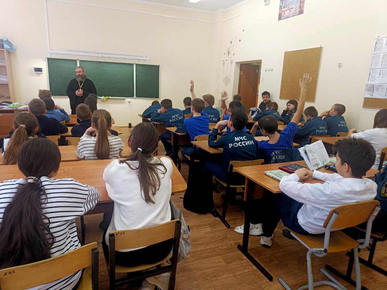 В тот же день настоятель Иоакимо-Анновского храма г. Звенигорода священник Николай Куренков провел в 6-ых классах МБОУ «Школа КвантУм» два урока. Отец Николай подарил для школы несколько книг, рассказал об истории праздника и ответил на вопросы учащихся.