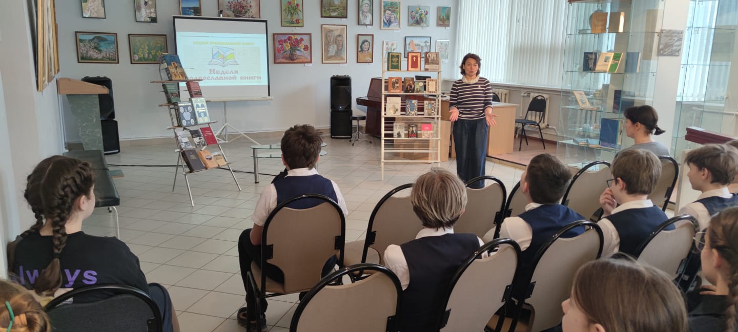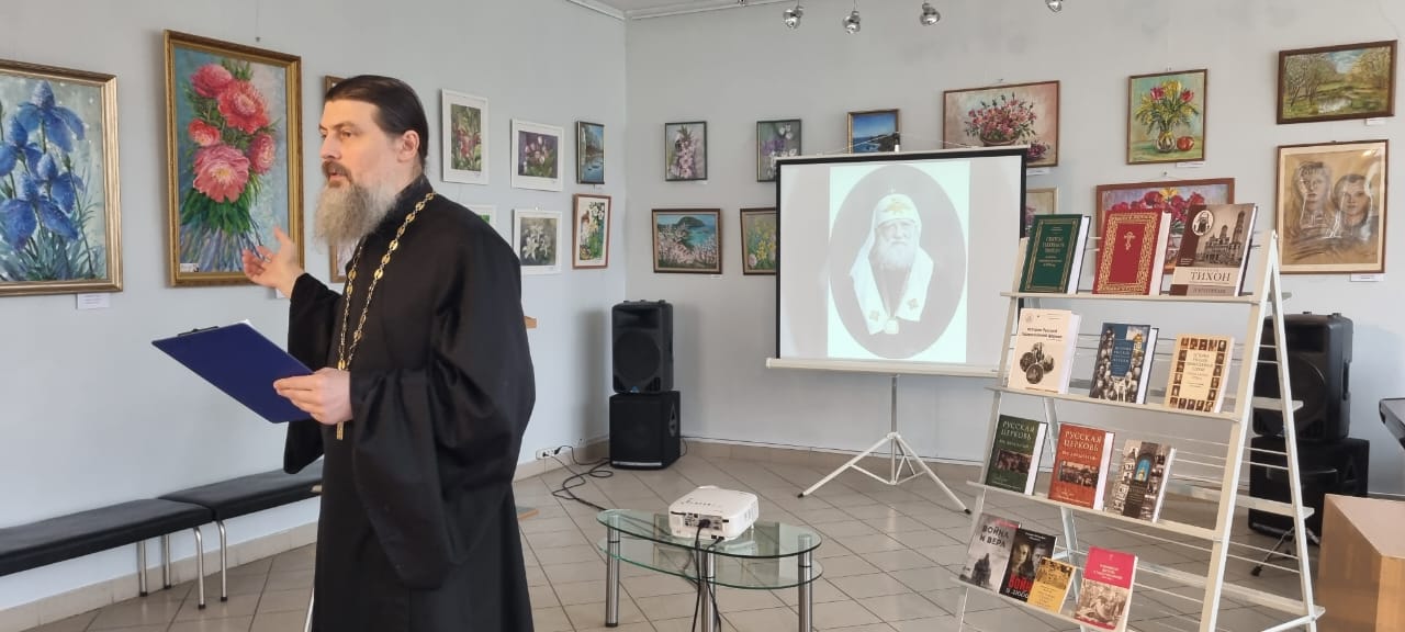 14 марта в Звенигородской библиотеке №1 состоялось открытие книжной выставки «Новомученики и исповедники Российские. Уроки истории». На открытие были приглашены ученики 6 класса Православной гимназии во имя преподобного Саввы Сторожевского. Заведующая библиотекой Татьяна Геннадьевна Чагина рассказала ребятам об истории книгопечатании на Руси, а священник Алексий Калачиков – о жизненном подвиге святителя Тихона, Патриарха Московского и всея Руси. По традиции в дар библиотеке благочинием были переданы книги, тема которых в нынешнем году была связана с именем Патриарха Тихона.