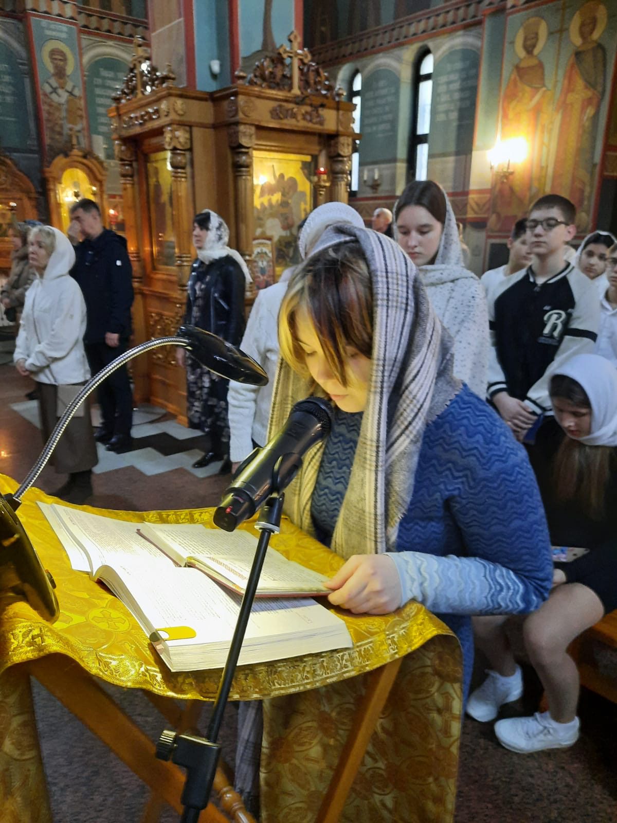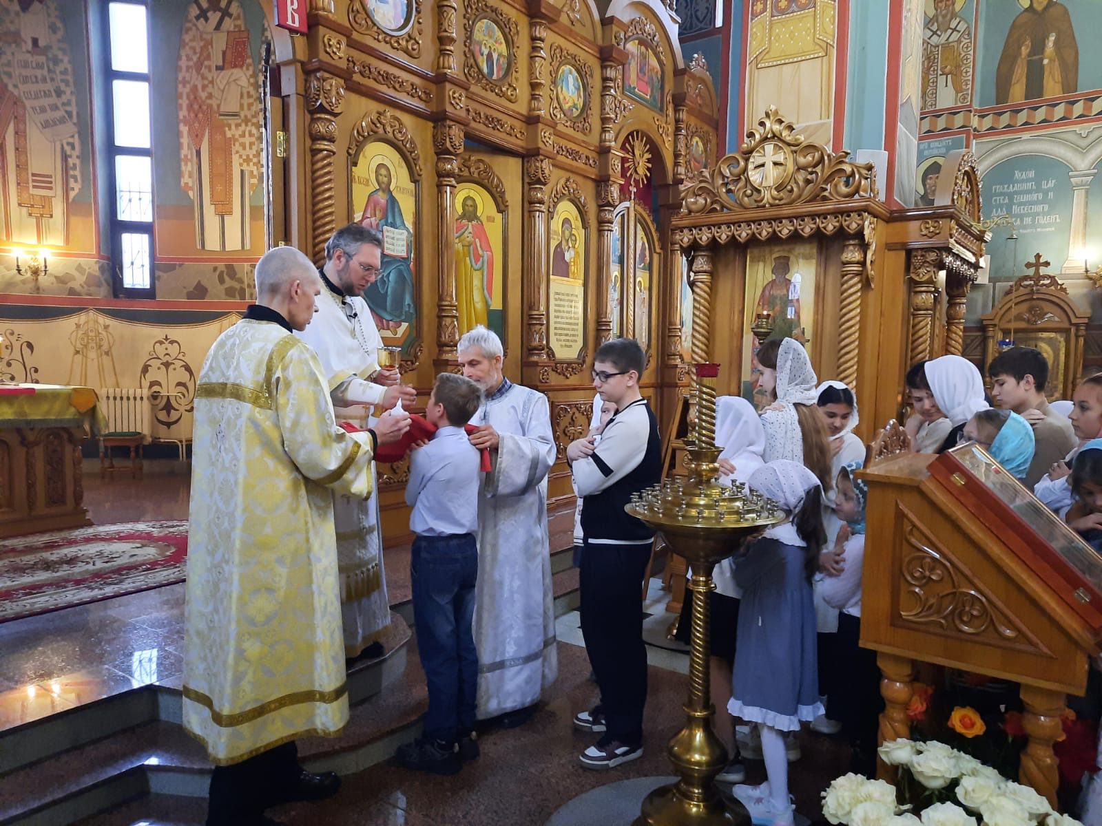 Особенностью богослужения стало активное участие самих ребят — всю службу они пели со взрослыми, создавая по-настоящему радостную и семейную атмосферу праздника.