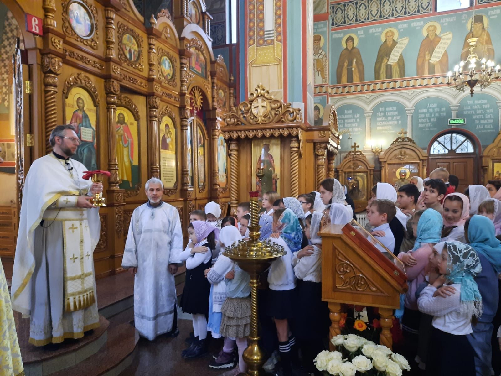 Юные прихожане с интересом слушали слова пастыря и ответили на несколько его вопросов, показав внимательность и понимание услышанного.