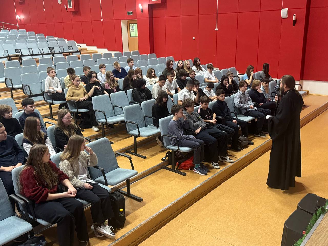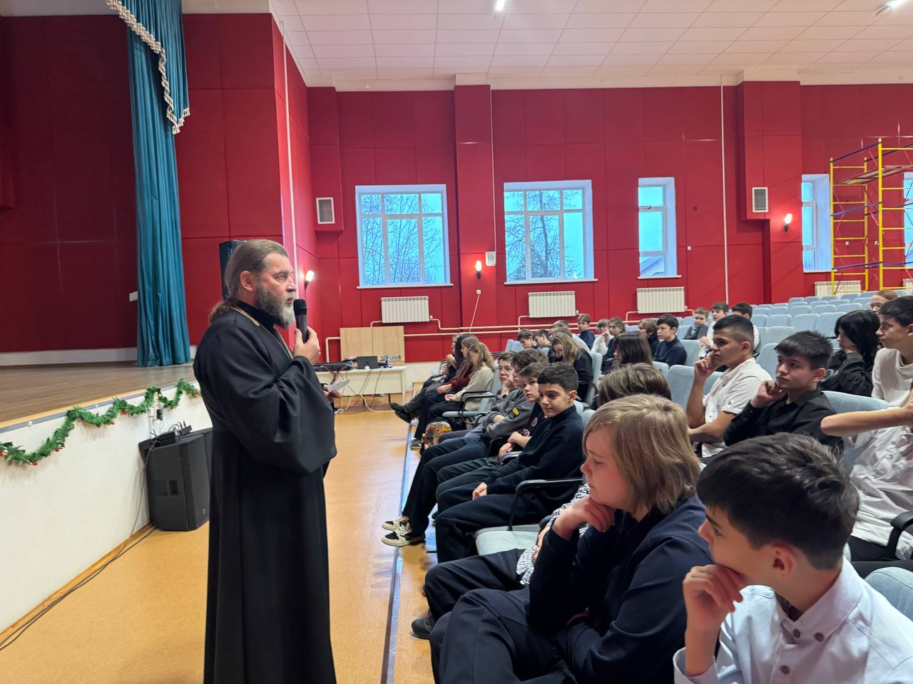17 декабря в Истринской СОШ N 3 им М. Ю. Лермонтова состоялась встреча протоиерея Димитрия Шмелёва, настоятеля Борисо-Глебского храма с. Куртниково с учениками 7х и 4х классов в рамках темы Рождественских чтений: Просвещение, нравственность, формирование личности и вызовы времени. Священнослужитель принял участие в собрании педагогического собрания школы, посвящённому трагическим событиям в Успенской СОШ в посёлке Горки 2.