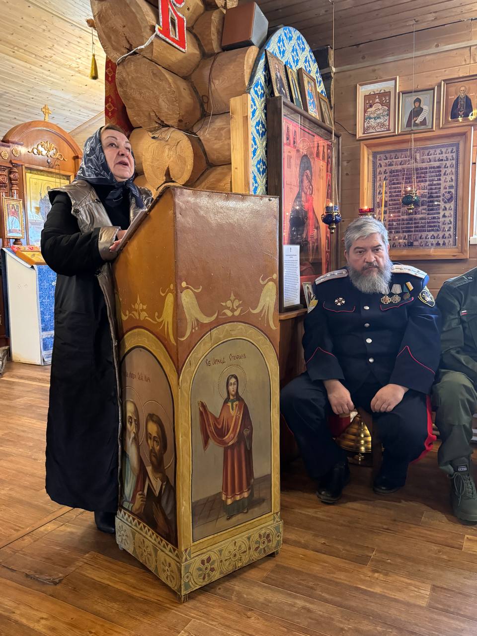 Работа Круга по традиции началась с общей молитвы. Благословил мероприятие настоятель Архангельского храма священник Сергий Андриянов. В собрании также принял участие духовник станицы, настоятель Дмитриевского храма села Большое Тесово протоиерей Родион Райш. Почетным гостем круга стала Депутат Московской областной Думы Сердюкова Татьяна Владимировна.