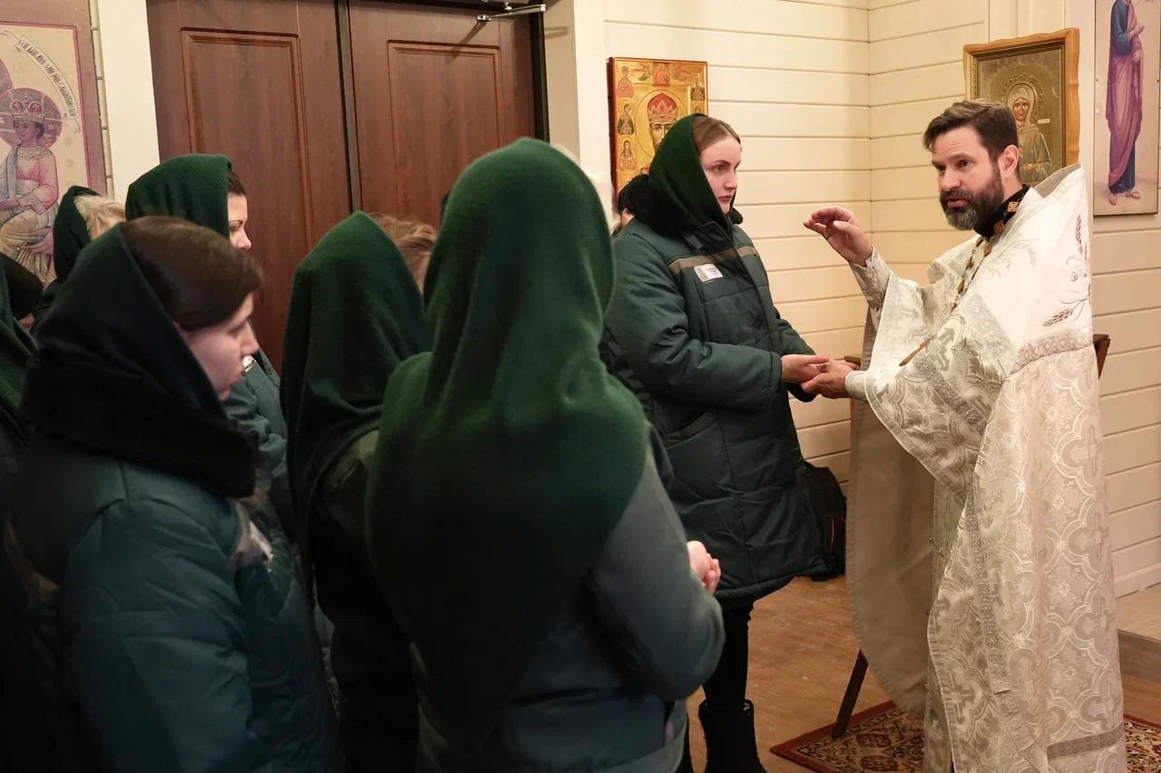 Центральным событием визита стала Божественная литургия в храме иконы Божией Матери «Споручница грешных», расположенном на территории колонии. Богослужение совершили представители Синодального и епархиальных отделов. Осужденные женщины получили возможность приступить к таинствам Исповеди и Причастия Святых Христовых Тайн.