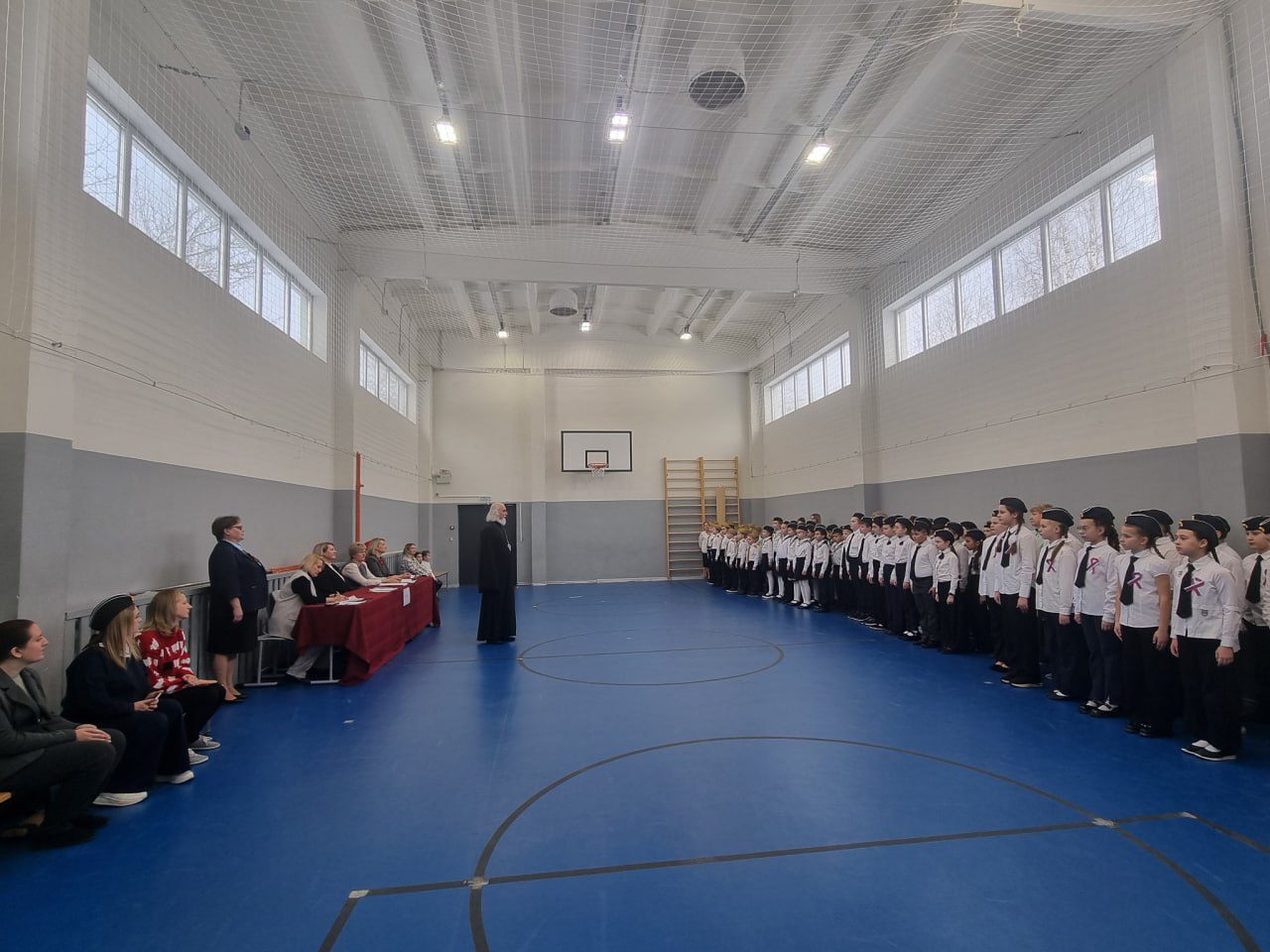 Смотр строя и песни, посвященный Дню защитника Отечества. Настоятель Никольского храма д. Мансурово протоиерей Вадим Сорокин был гостем мероприятия. Священнослужитель напомнил участникам о многих защитниках нашей Родины в разные века, пожелал сплоченности и умения работать в коллективе. В начале смотра перед участниками выступил юнармейский отряд «Патриот», который продемонстрировал образцовую строевую подготовку. Каждый класс поделился своими умениями: ребята маршировали, пели военные песни и демонстрировали навыки владения строевым шагом и перестроениями.