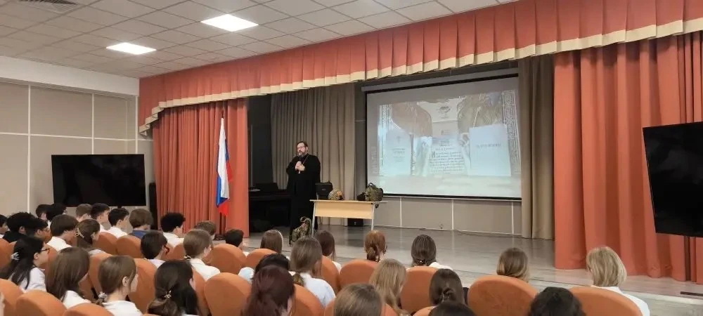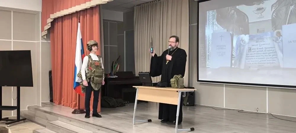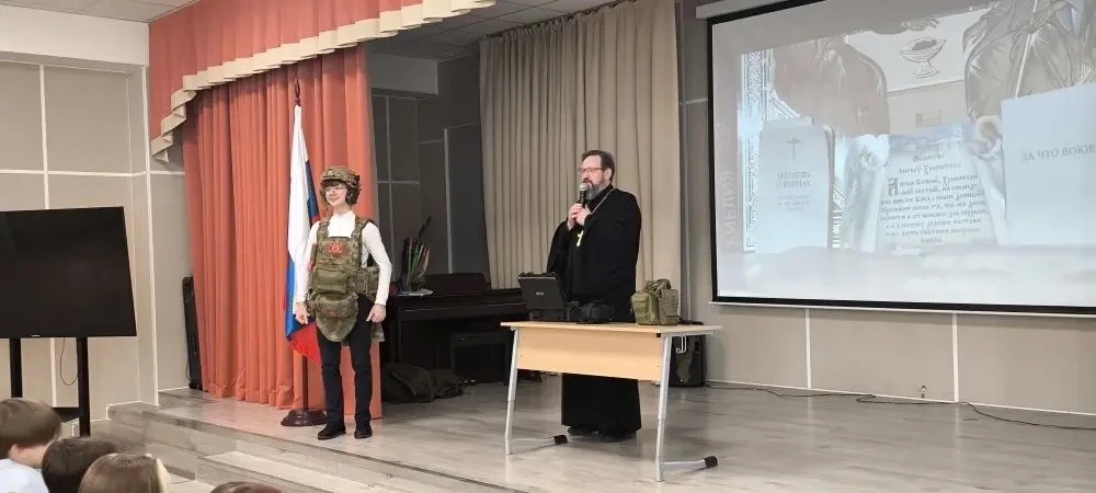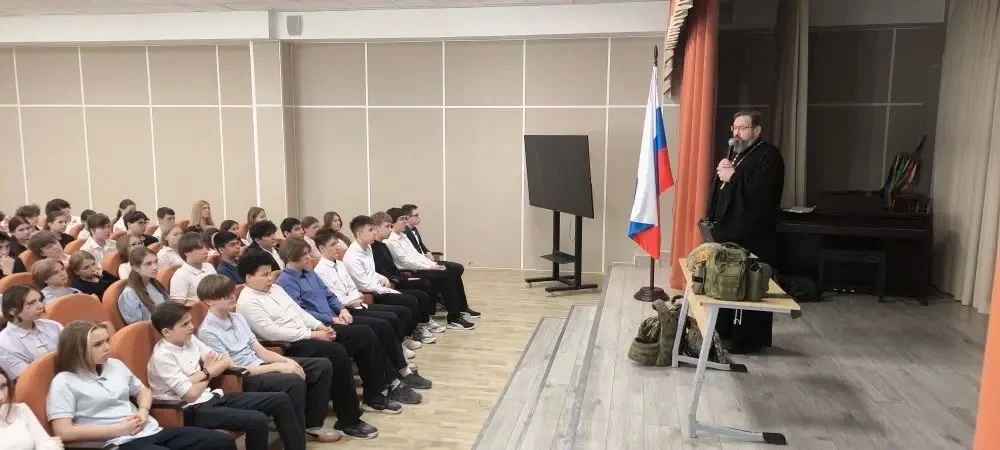 16 марта в МОУ «Лицей г. Истра» прошло значимое мероприятие, на котором выступил настоятель Мироносицкого храма иерей Павел Малкин, который поделился с восьмиклассниками опытом священнического служения на СВО.