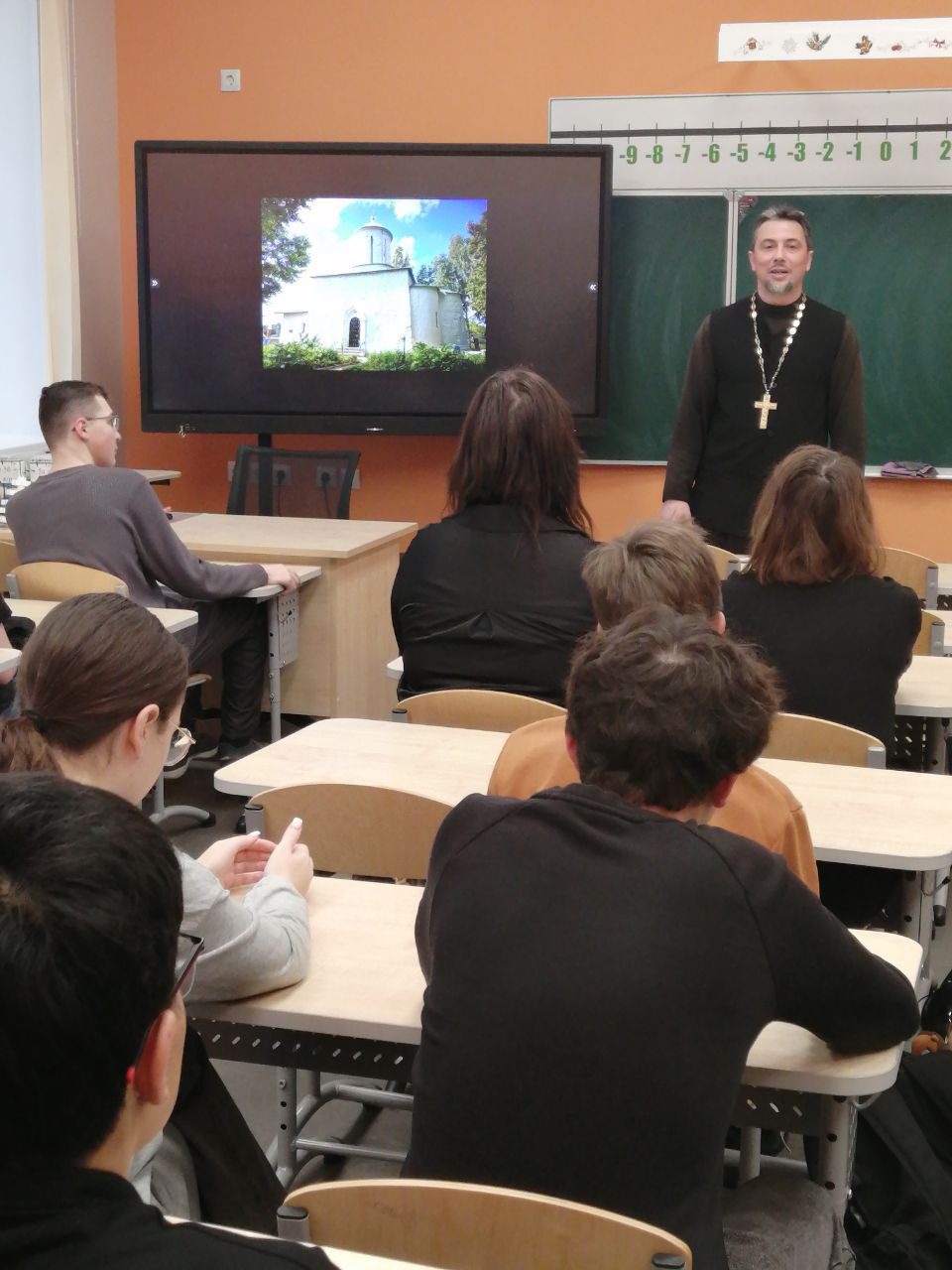 В средней общеобразовательной школе №1 города Наро-Фоминска для учащихся 9-х классов прошло занятие на тему «Духовное наследие Наро-Фоминской земли. Христианство или язычество?». Его провёл священник Иоанн Соловей, настоятель Сергиевского храма д. Могутово, член миссионерского отдела Одинцовской епархии.