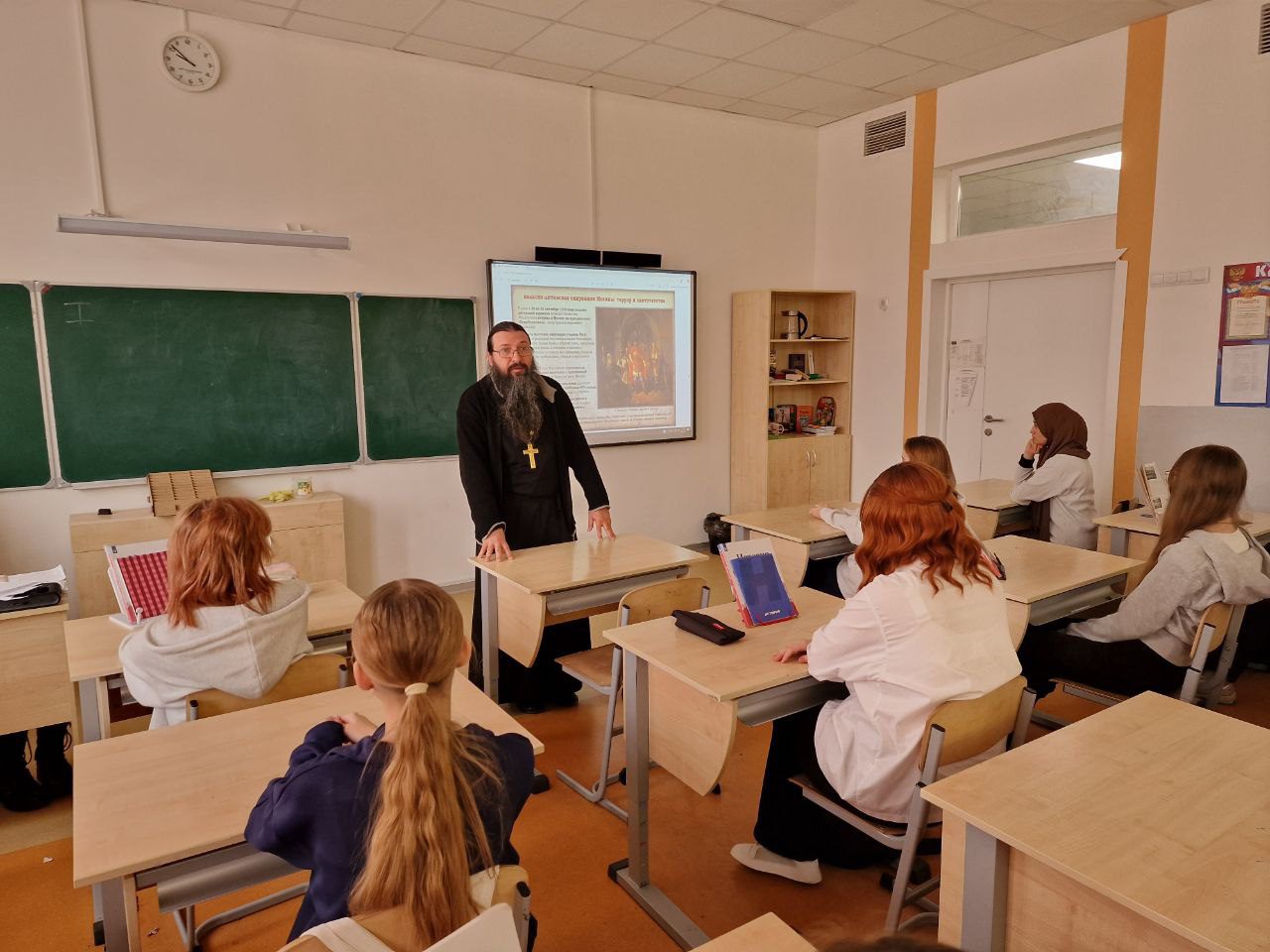 Рассказ отца Игоря дополнил учитель истории Михаил Трушкин, который изложил историческую канву событий того времени. Ученики смогли лучше понять политическую обстановку, ключевые решения и военные аспекты освобождения Москвы от интервентов.