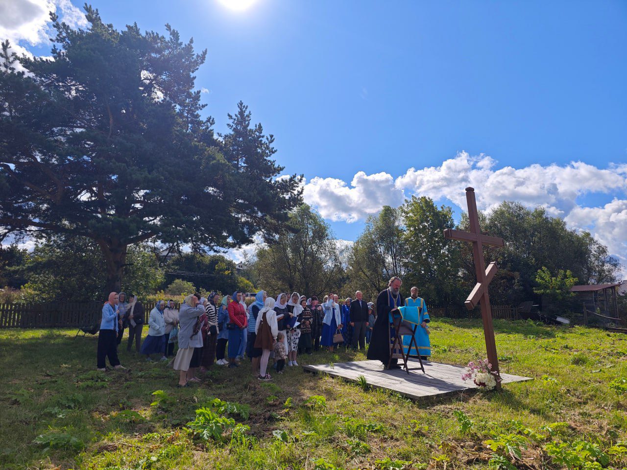 28 августа в селе Онуфриево иерей Михаил Сорокин совершил молебен в честь праздника Успения Пресвятой Богородицы у поклонного Креста на месте утраченного храма. Молебен стал значимым событием для всех прихожан и жителей села.