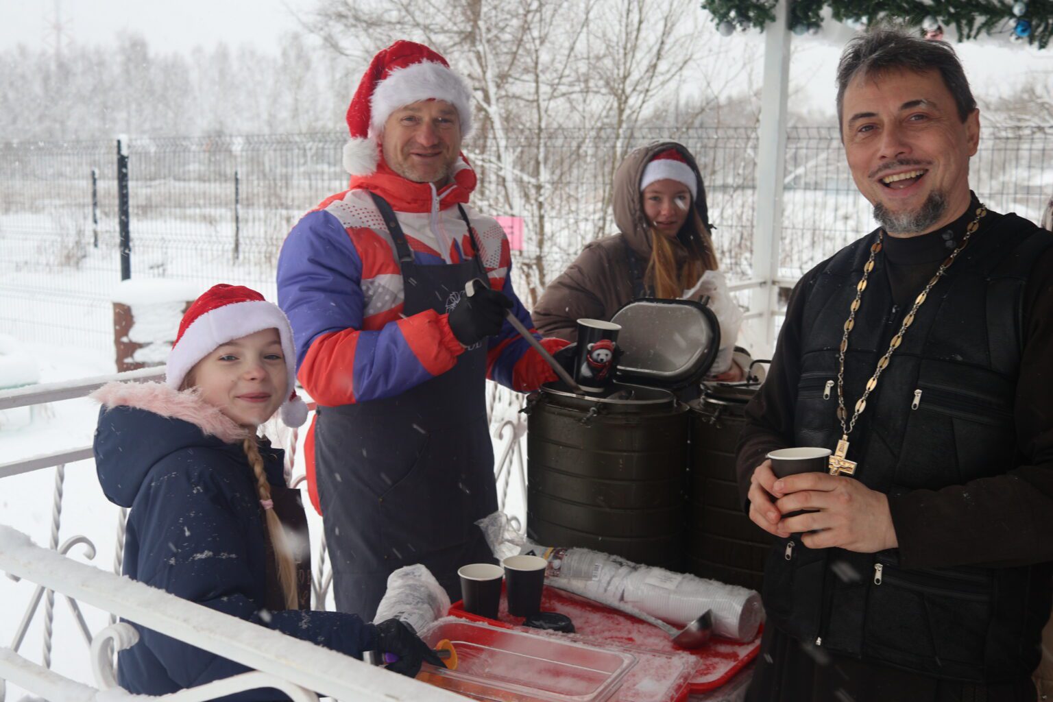 После воскресного богослужения прихожане и гости храма смогли пообщаться, разделить радость ожидания праздника, угоститься сбитнем и провести время в неформальной обстановке на территории храма.