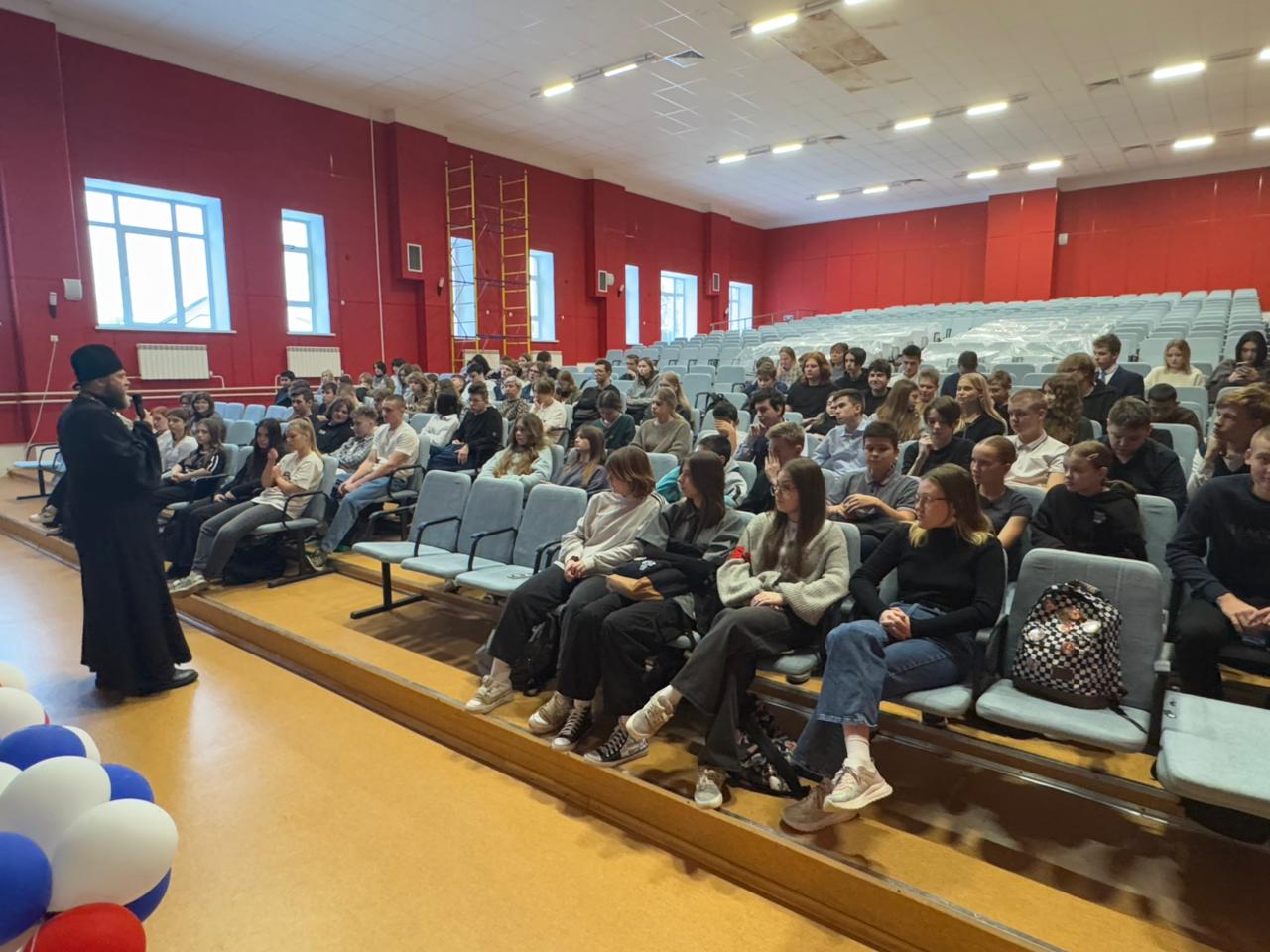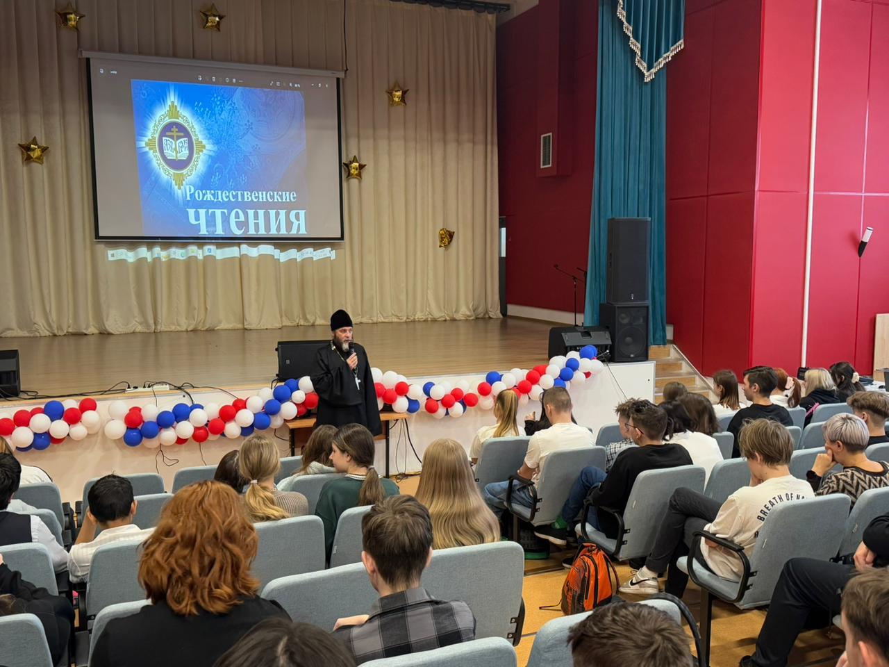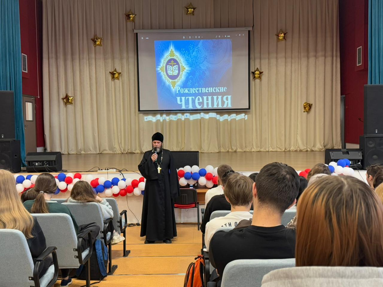 11 декабря в Средней общеобразовательной школе N 3 им. М.Ю. Лермонтова г. Истры настоятель Борисо-Глебского храма села Куртниково протоиерей Димитрий Шмелёв провёл беседу с учащимися 8, 10 и 11 классов по теме Рождественских образовательных чтений «Подвиг Русской Православной Церкви в годы Великой Отечественной войны.