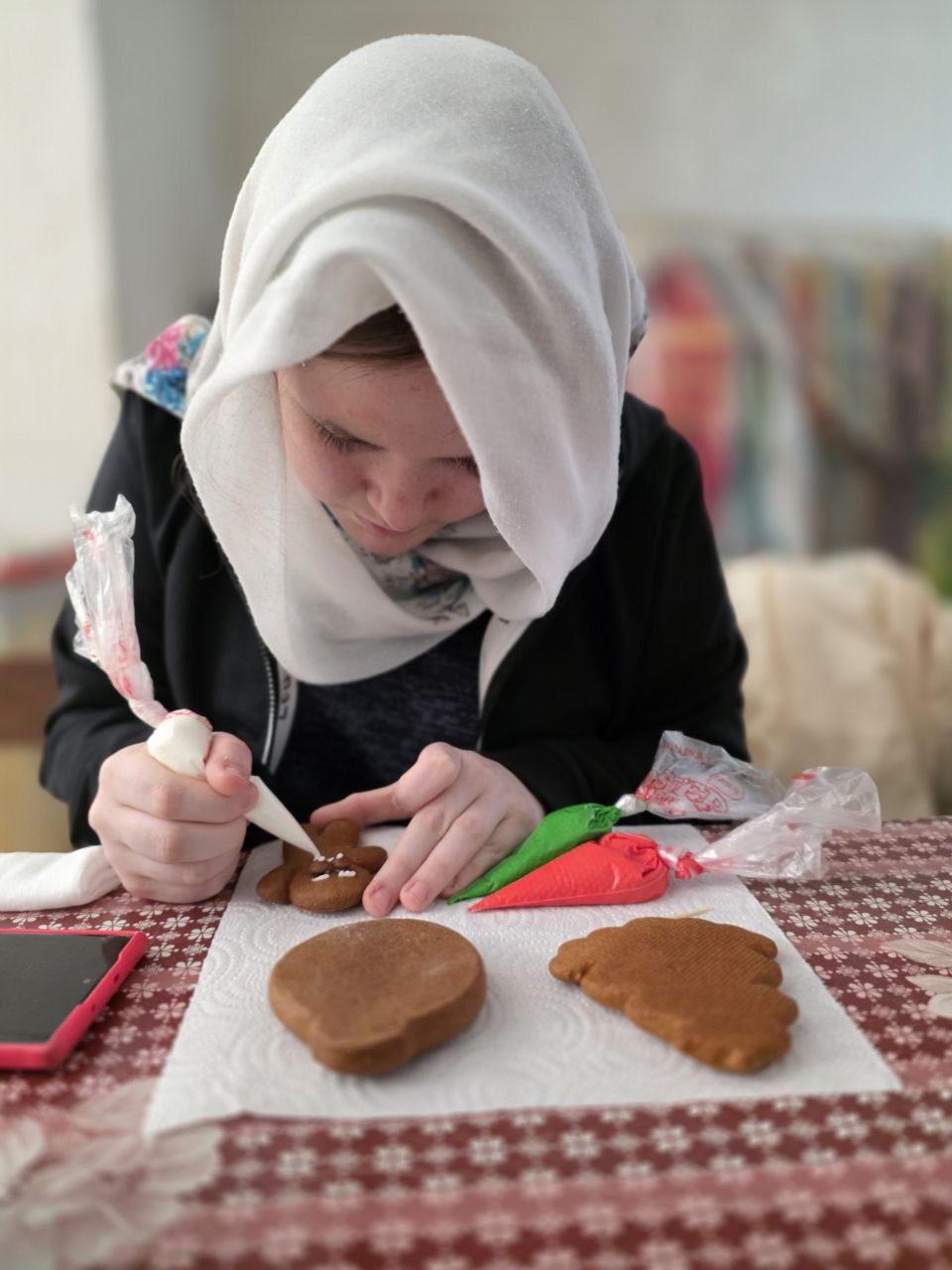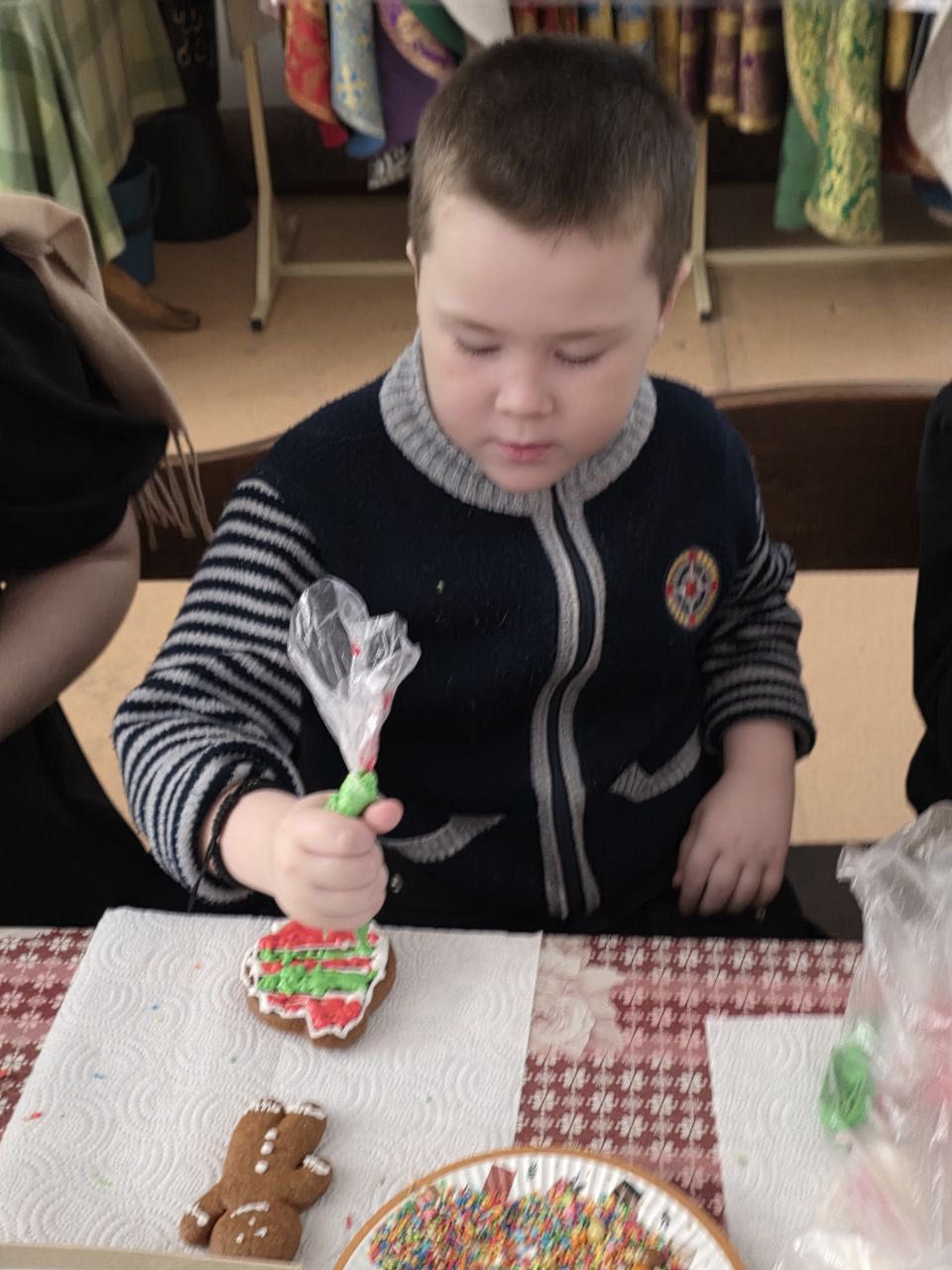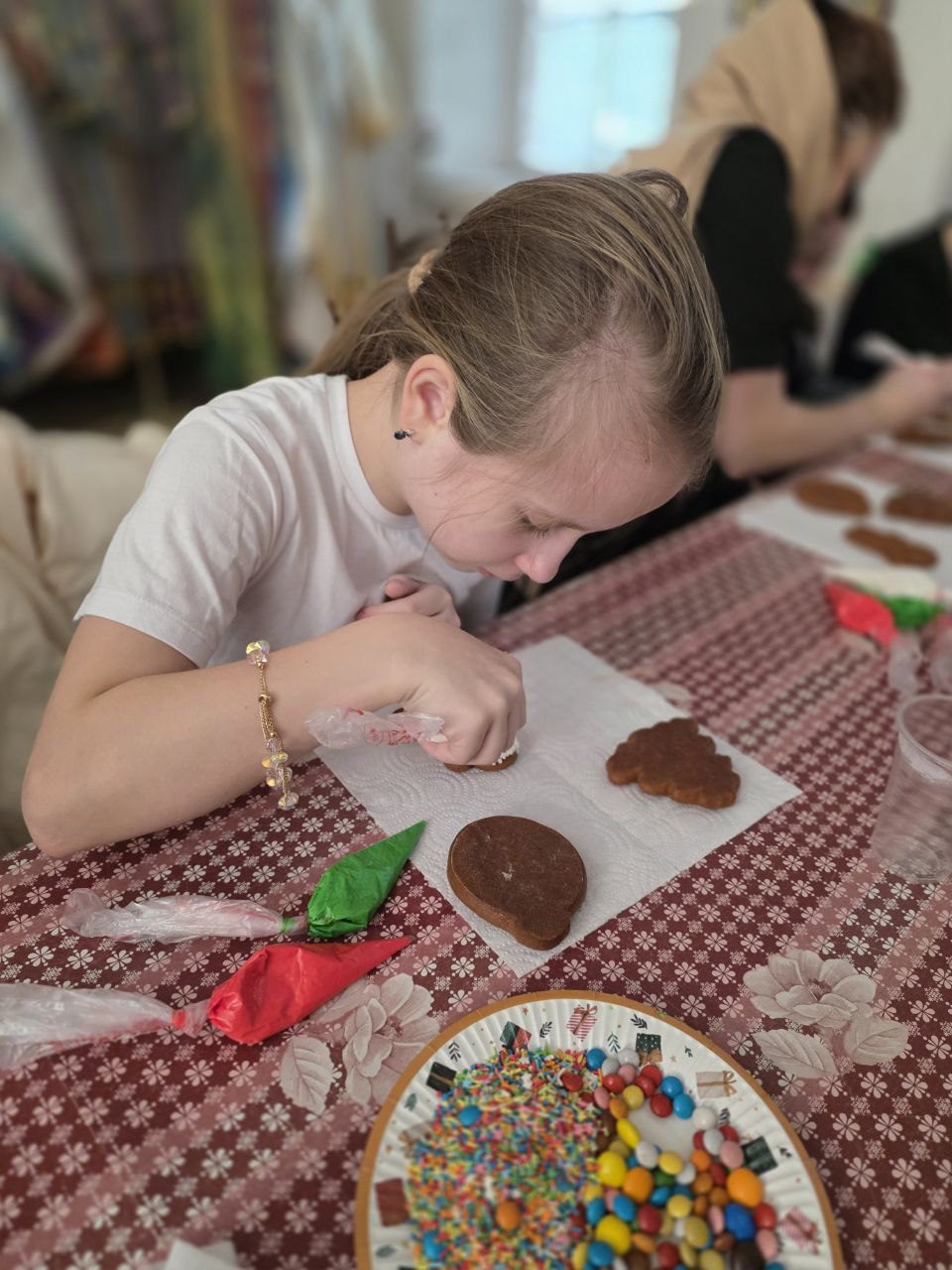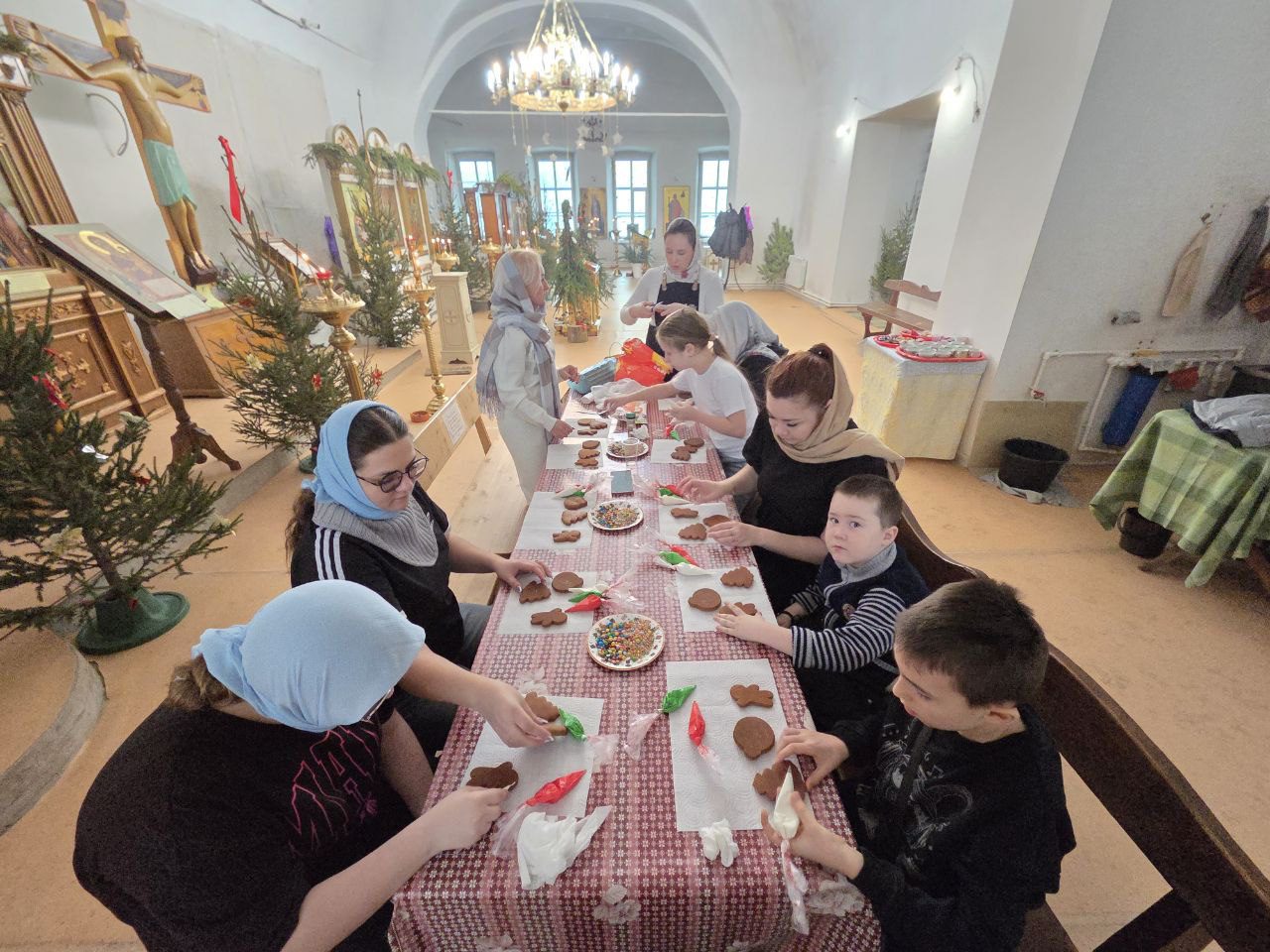 На мероприятии был организован мастер-класс по росписи пряников, после которого состоялось чаепитие. В теплой и дружеской атмосфере прошла беседа с настоятелем храма отцом Михаилом Поляковым, сотрудником Службы помощи участникам СВО и членам их семей Одинцовской епархии.