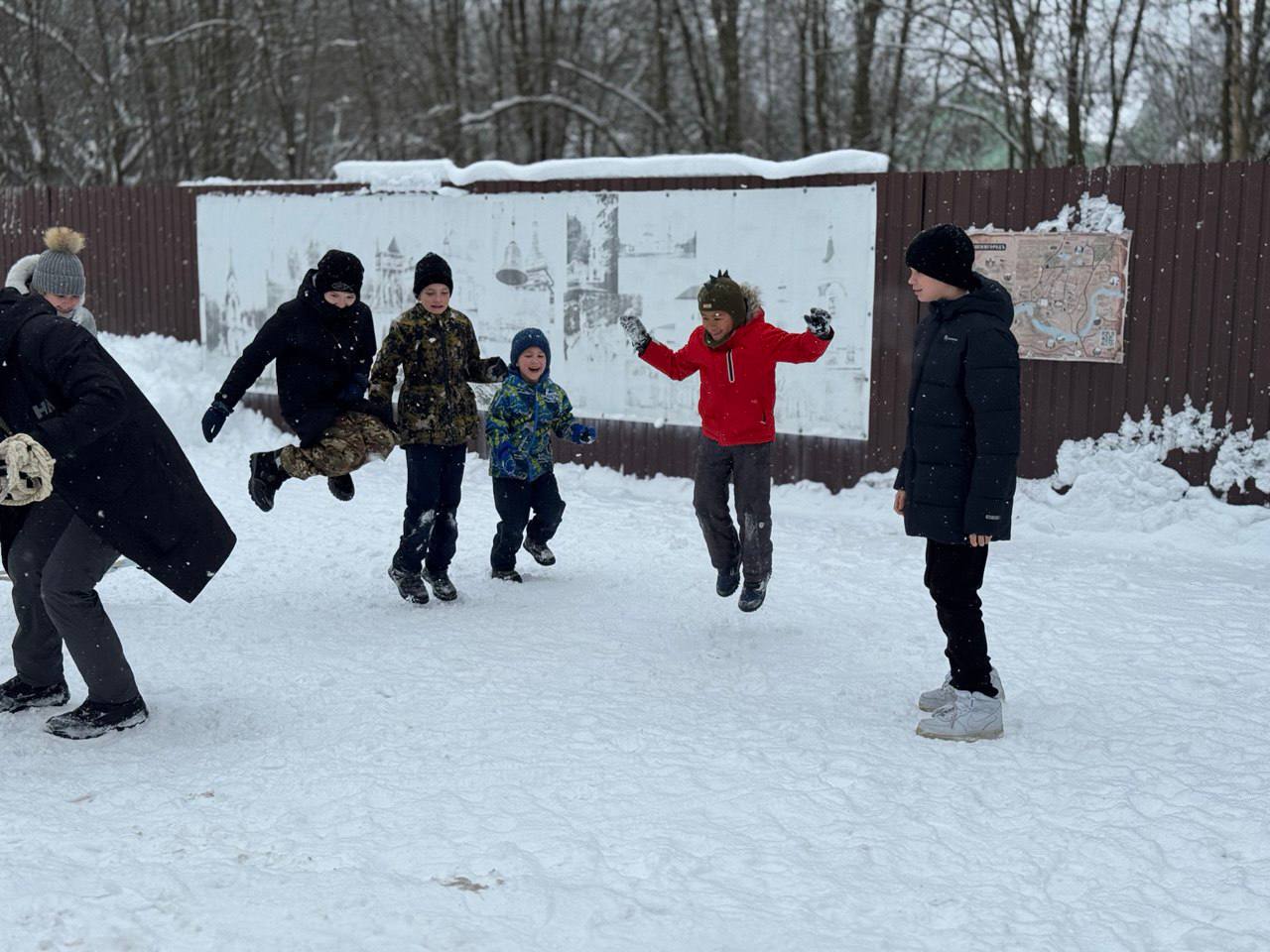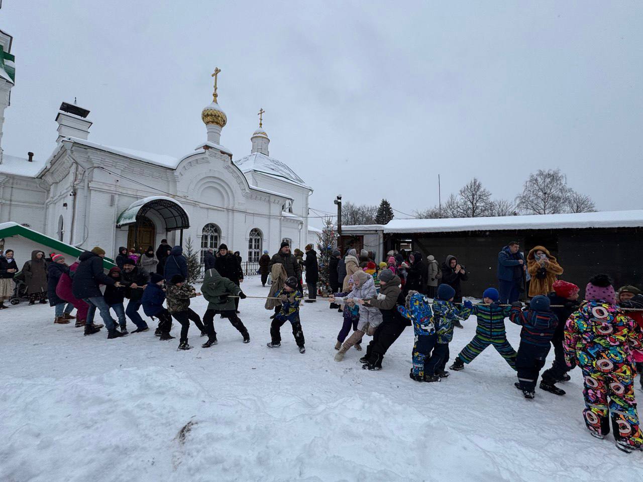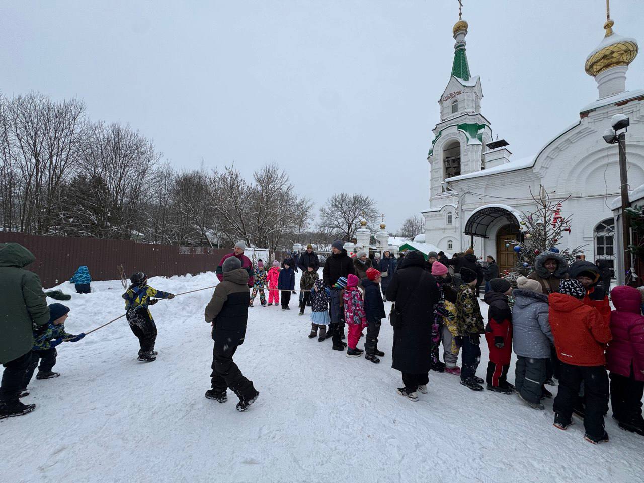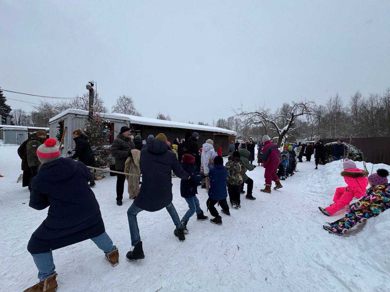 После спектакля на улице для детей устроили весёлые игры и конкурсы с музыкой и подарками. Дети играли в снежки, перетягивали канат и участвовали в других забавах.
