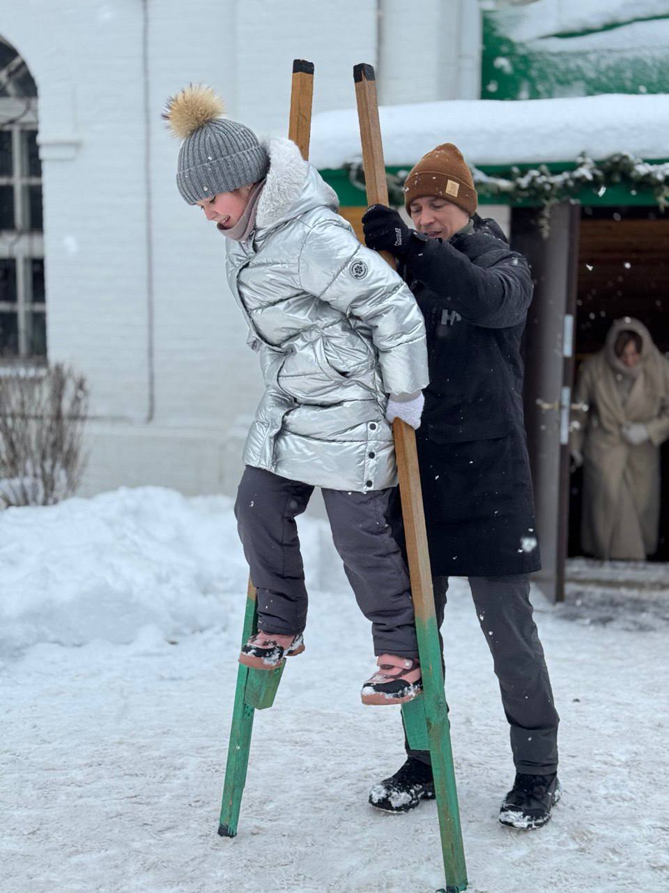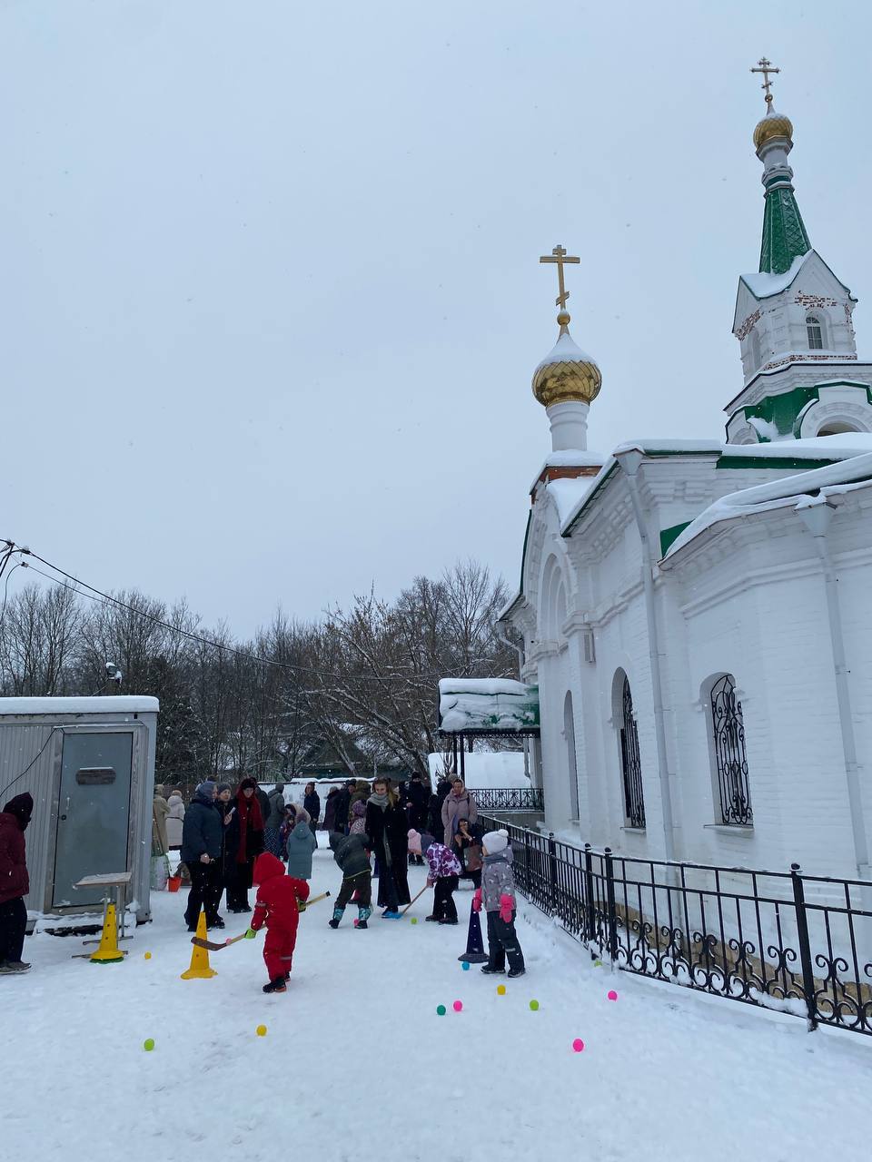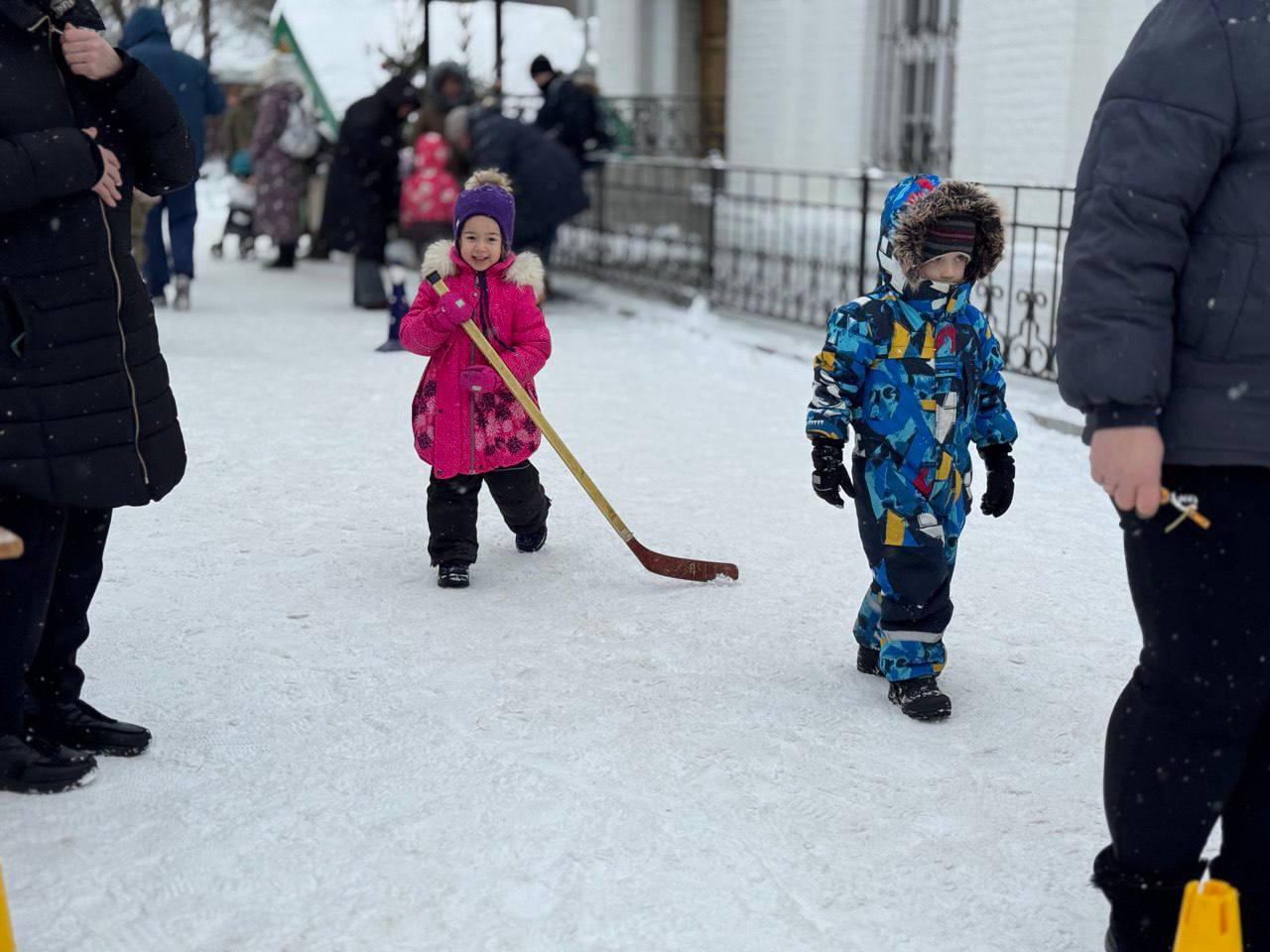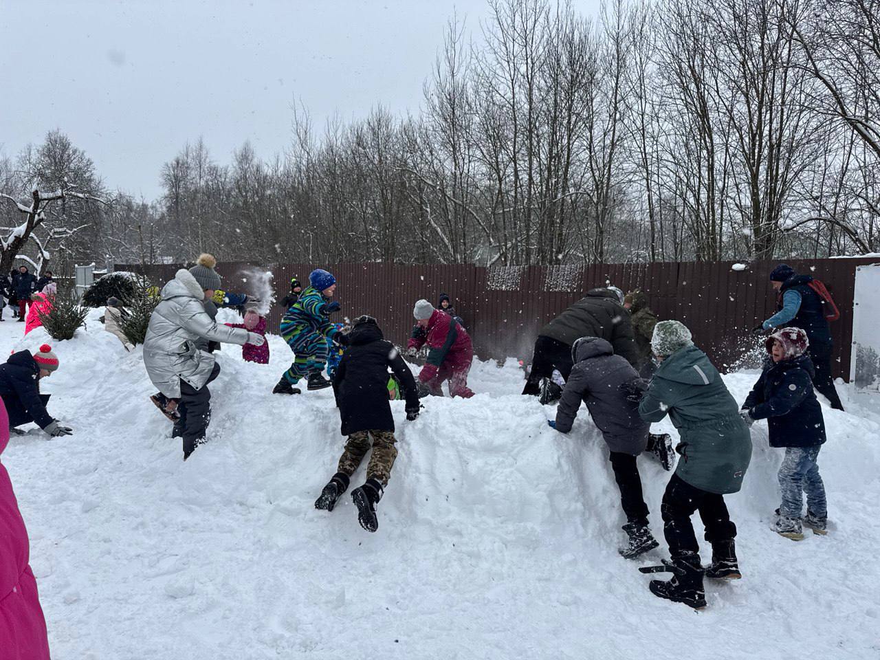 После спектакля на улице для детей устроили весёлые игры и конкурсы с музыкой и подарками. Дети играли в снежки, перетягивали канат и участвовали в других забавах.