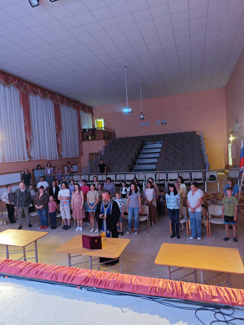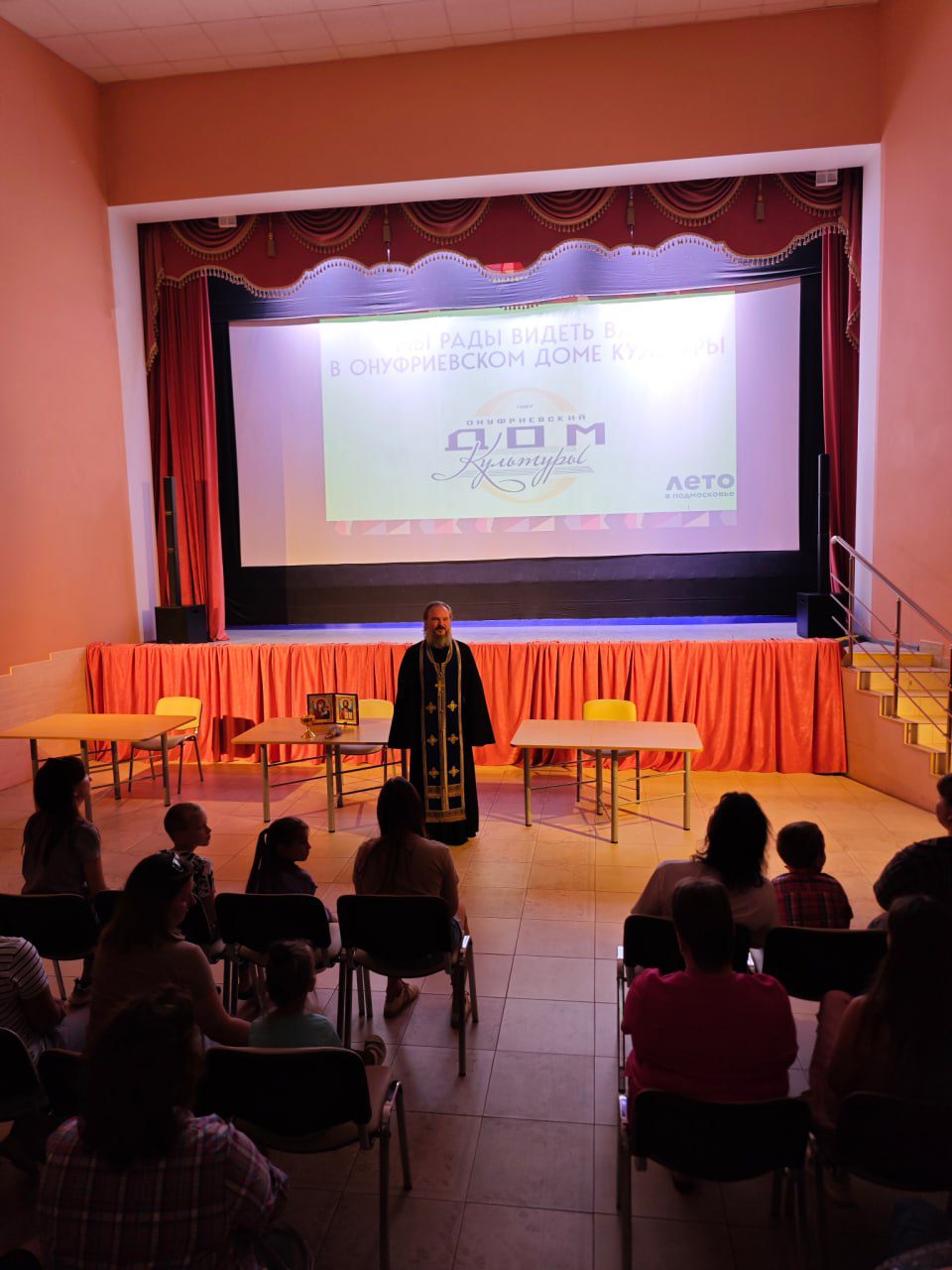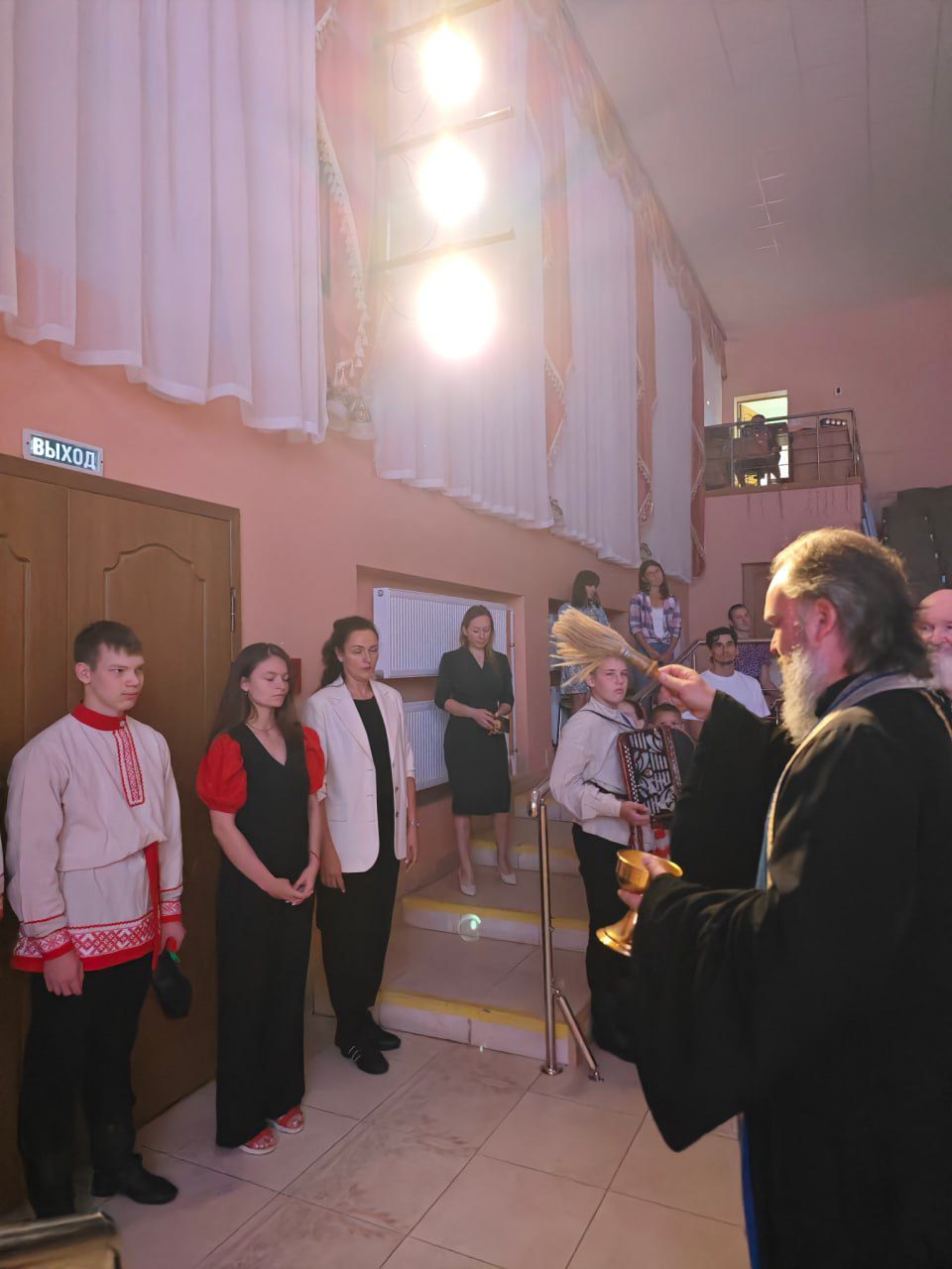 В продолжении все были приглашены в ДК Онуфриево, где состоялся день открытых дверей, начавшийся с молебного пения и благословения преподавателей и гостей праздника.