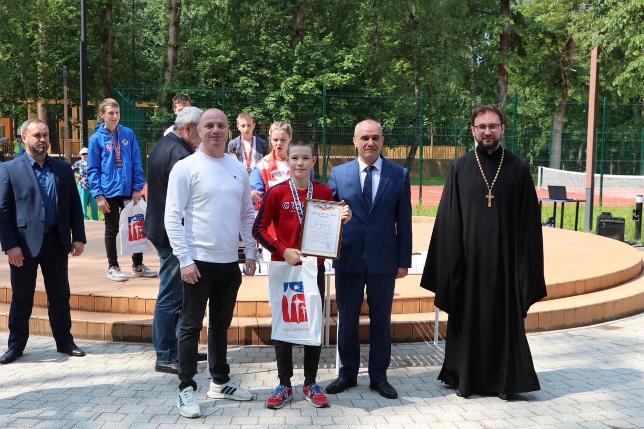Вторая часть празднования Дня защиты детей продолжилась в парке «Беличий» по сложившейся традиции прошла церемония вручения памятных медалей семьям с новорожденными детьми и награждение призеров международного первенства по универсальному бою.