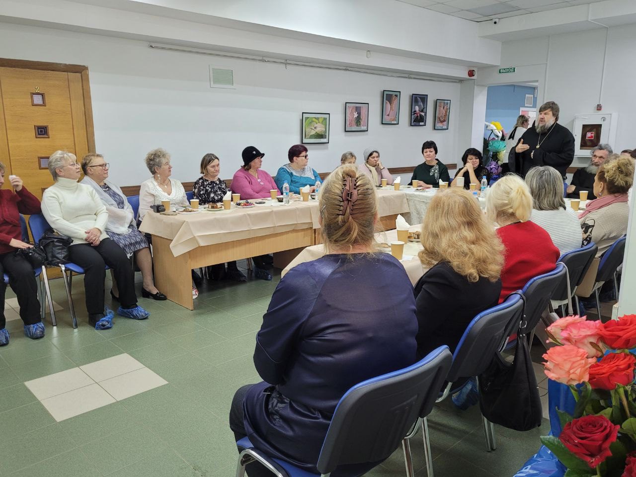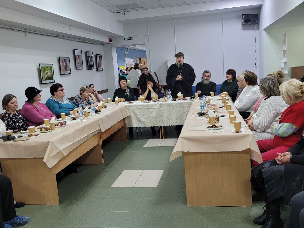 На встрече в форме «чаепития» с  теплыми словами выступили : заместитель главы администрации Рузского г.о. Волкова Екатерина Сергеевна, благочинный Рузского округа протоиерей Игорь Лепешинский, член епархиального Отдела по церковной благотворительности и социальному служению протоиерей Олег Ковалев, зам.начальника ОУСР 25 Наталья Марфутова директор Центра социального обслуживания Юлия Казак.