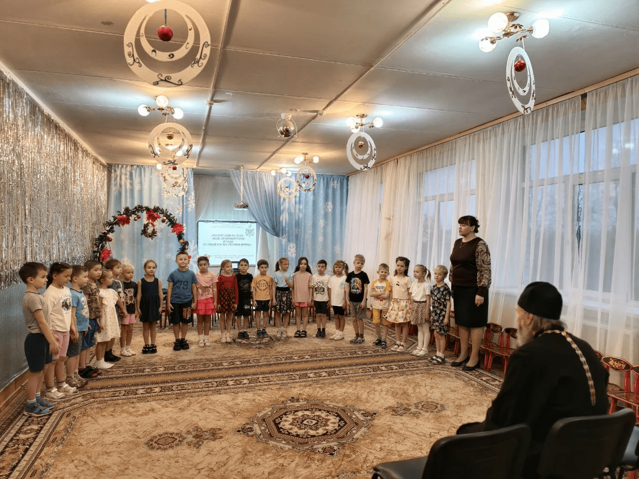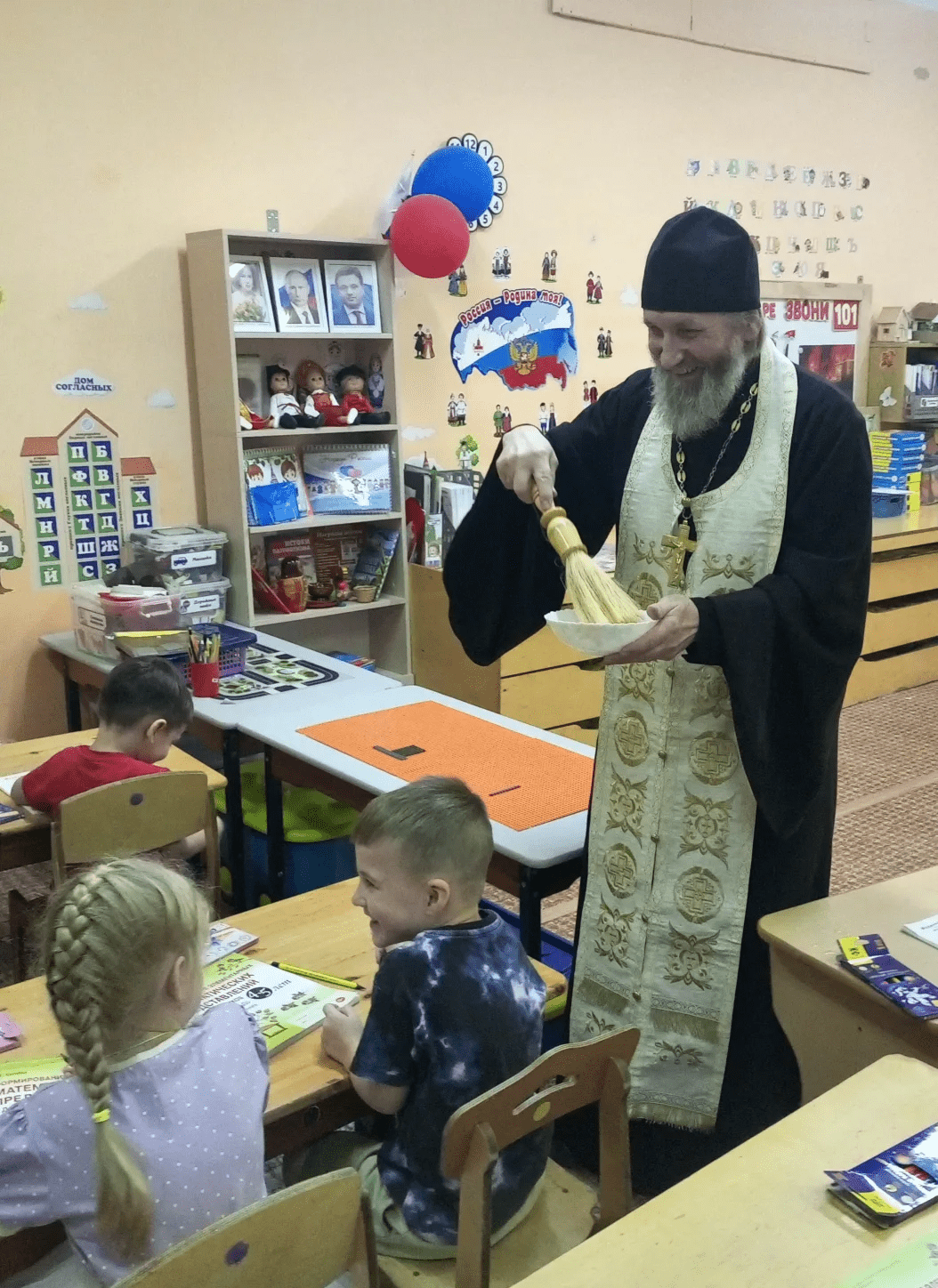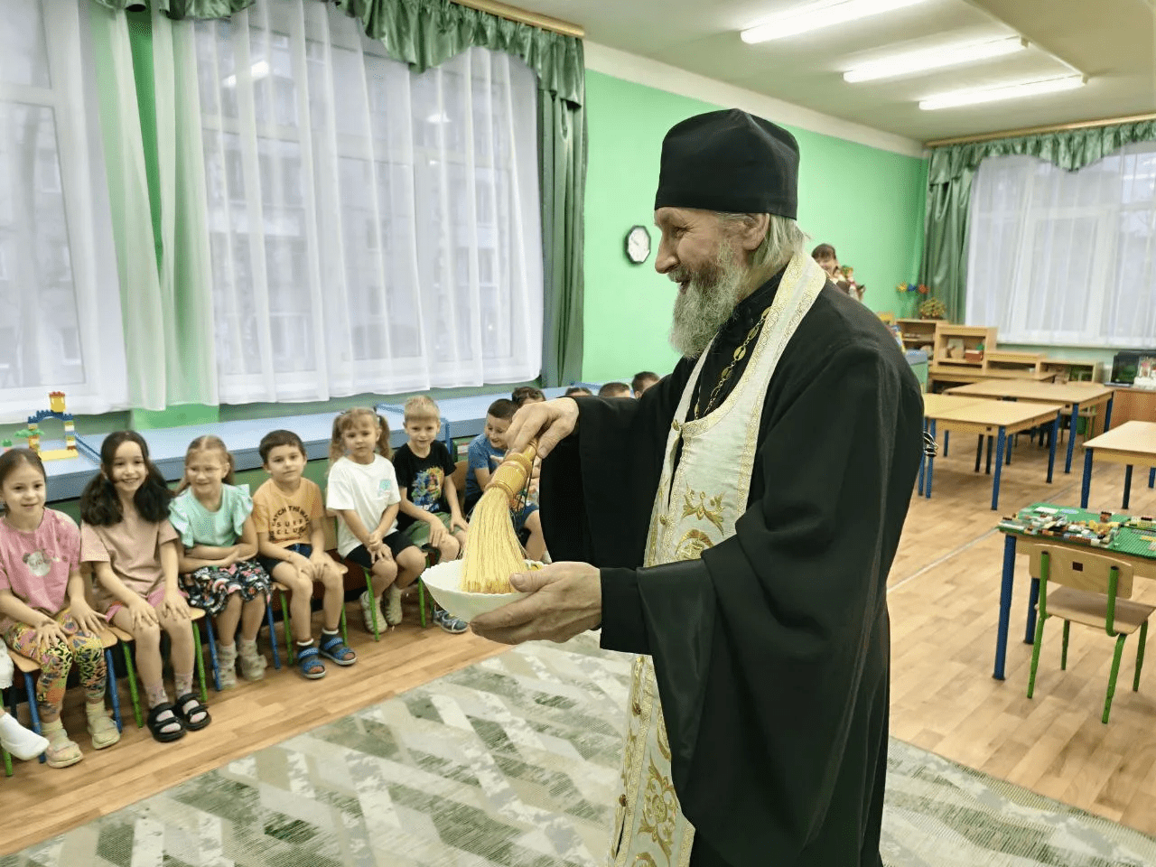 После занятия батюшка окропил детский сад святой водой, пожелав всем мира и добра!