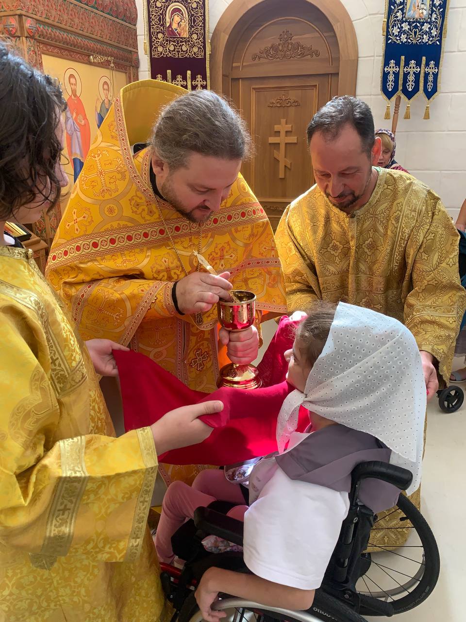 9 августа, в день памяти великомученика и целителя Пантелеймона, настоятель Никольского храма села Никулино — протоиерей Вячеслав Коновалов, окормляющий детский Елизаветинский хоспис в поселке Пионерский, совершил Божественную литургию, на которой Святых Христовых Таин причастились подопечные хосписа, затем отец Вячеслав причастил пациентов в палатах.
