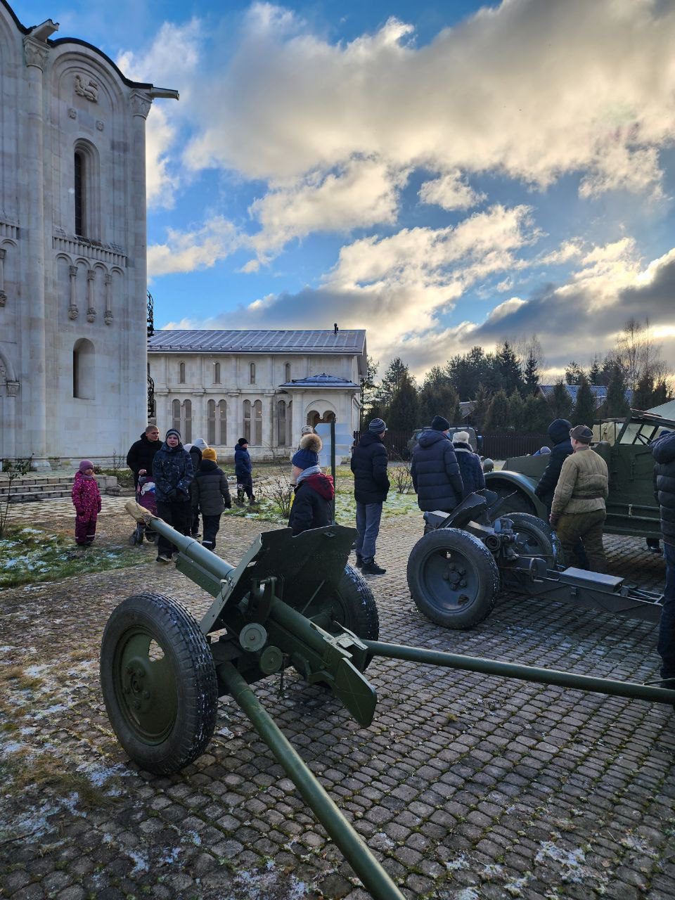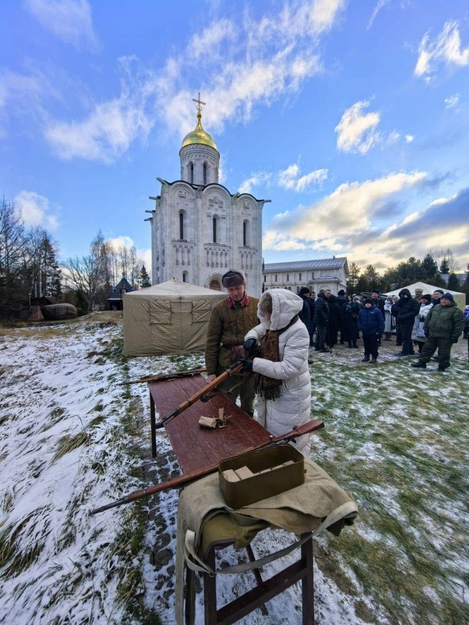 На территории храма была представлена военная техника тех лет, развернут макет полевого госпиталя и палатка с солдатским бытом. Гости, особенно школьники, могли ознакомиться со стенгазетами и под контролем инструкторов сделать холостой выстрел из учебного оружия. Также для всех присутствующих была организована полевая кухня, где накормили солдатской кашей и напоили чаем.