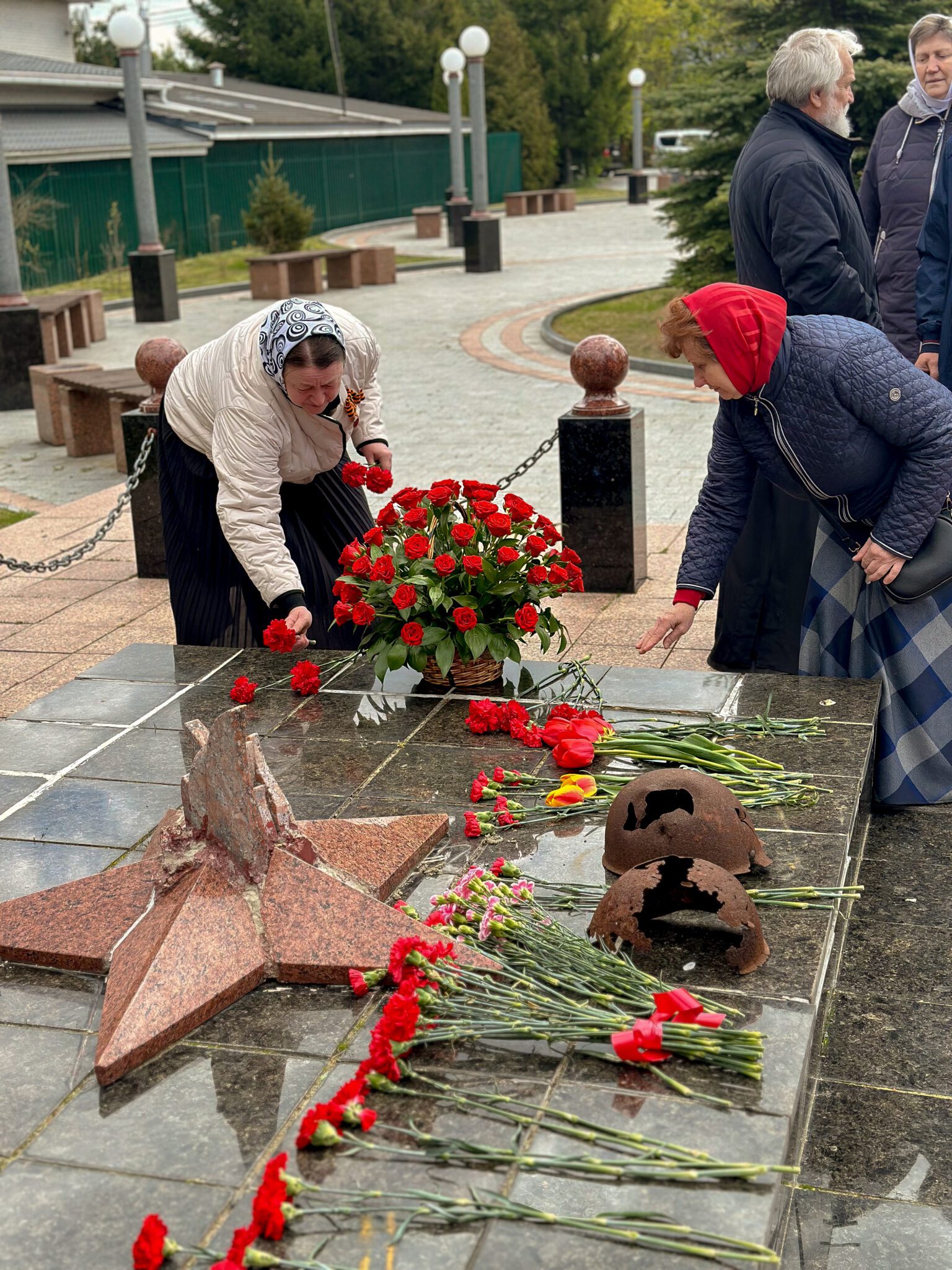 Затем настоятель храма протоиерей Игорь Борисов , прихожане и жители деревни возложили цветы у памятника.