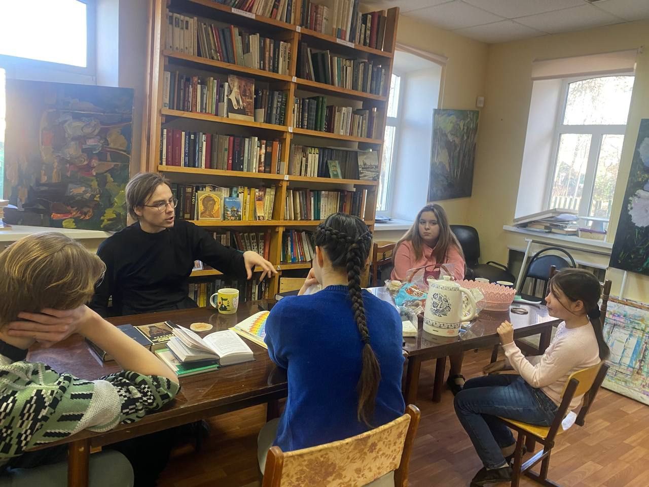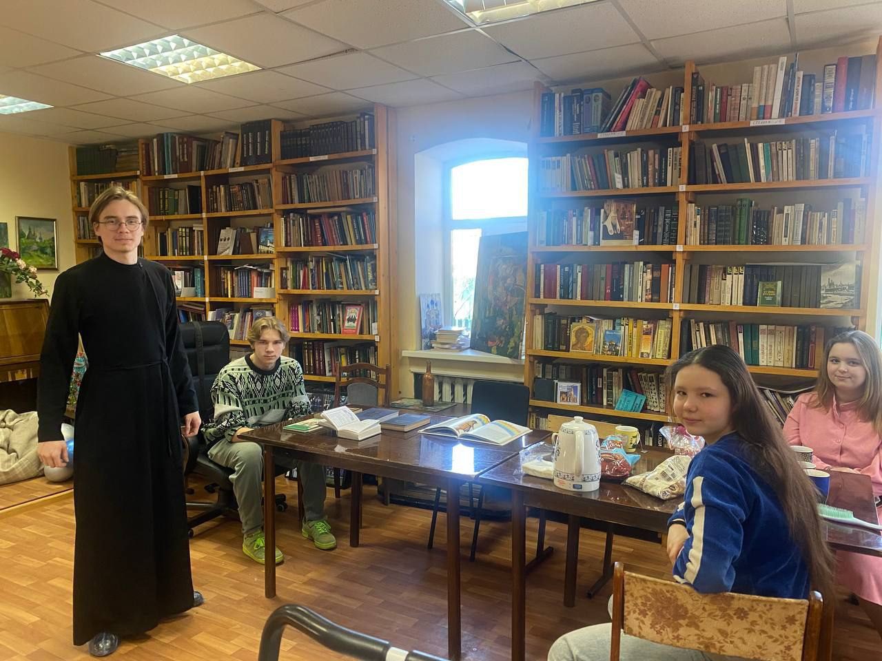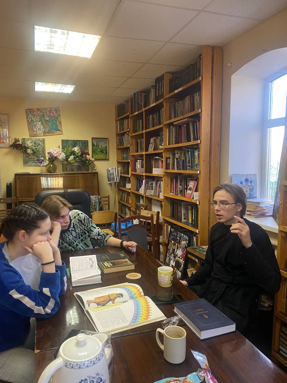 16 марта в библиотеке Христорождественского храма г. Звенигорода прошла беседа с молодёжным клубом прихода на тему Дня православной книги. Беседу провел клирик храма диакон Вадим Куров. На встрече обсуждались основные богослужебные и аскетические труды Церкви, а также произведения русской литературы. Ребята рассказывали свои впечатления о прочитанных книгах Ф. М. Достоевского, размышляли над историей написания Библии, вспоминали яркие истории из Патерика и делились мнениями.