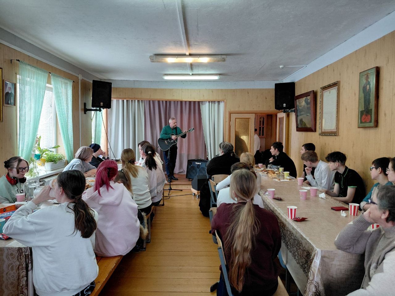 Затем в воскресной школе Данииловского храма прошли Молодежные посиделки, посвященные Дню православной молодежи. Отец Александр Якименко напутствовал молодежь пастырским словом. На встрече прозвучали стихи, песни под гитару и музыкальные композиции. Участники посиделок попили чай и пообщались.