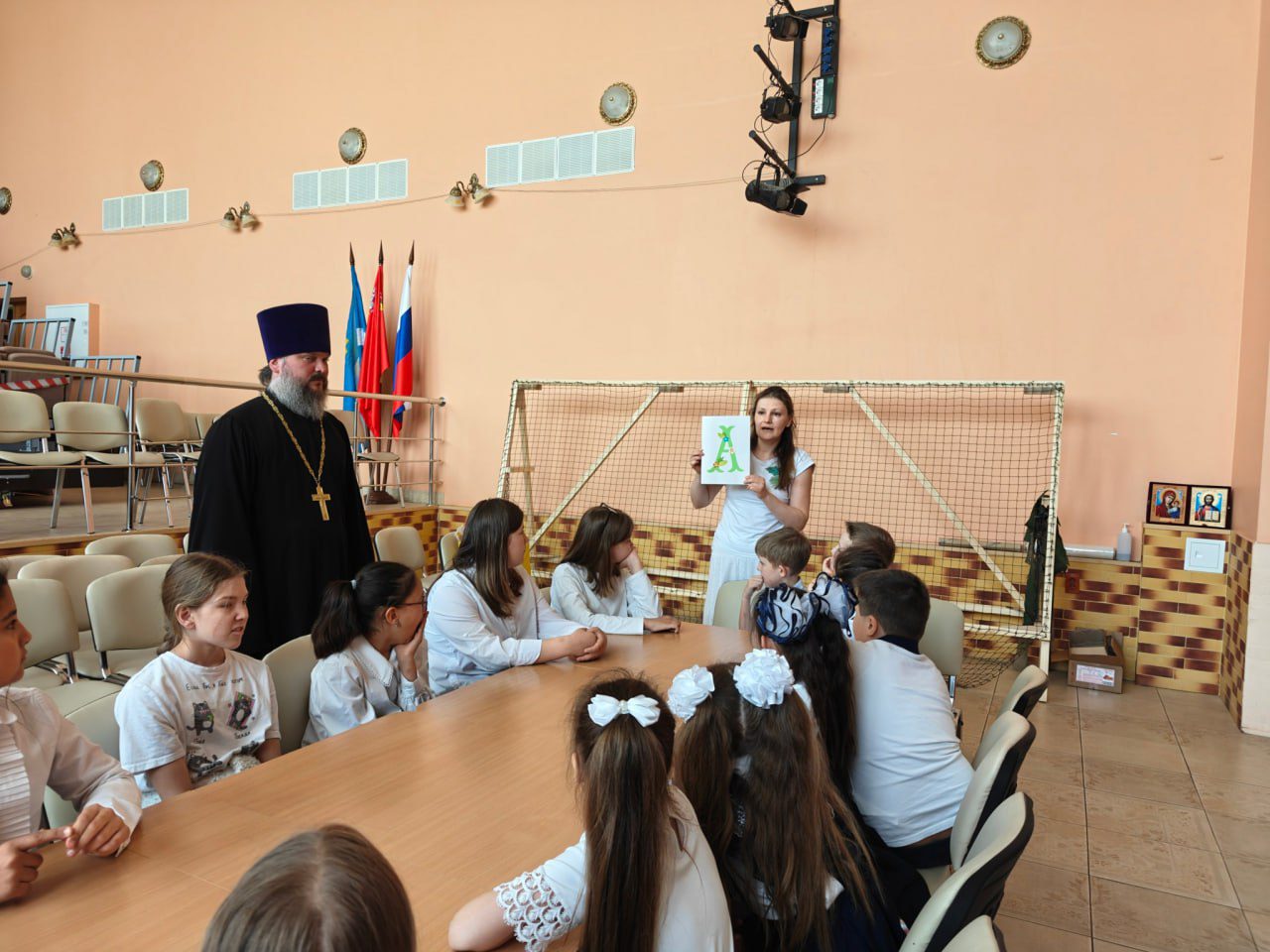 23 мая иерей Михаил Сорокин, настоятель Успенского храма с. Онуфриево и по совместительству клирик Никольского храма д. Мансурово, посетил ДК Онуфриево, где состоялась встреча с учениками и преподавателями СОШ Костровское-Онуфриевское. Участники встречи смотрели документальный фильм, посвященный святым, делились полученными знаниями. Священник поблагодарил сотрудников ДК за организацию и проведение встречи и пригласил всех желающих принять участие в мастер-классе, посвященном Азбуке.