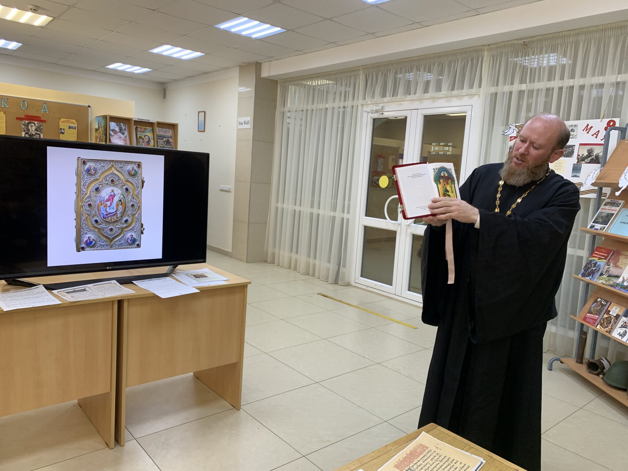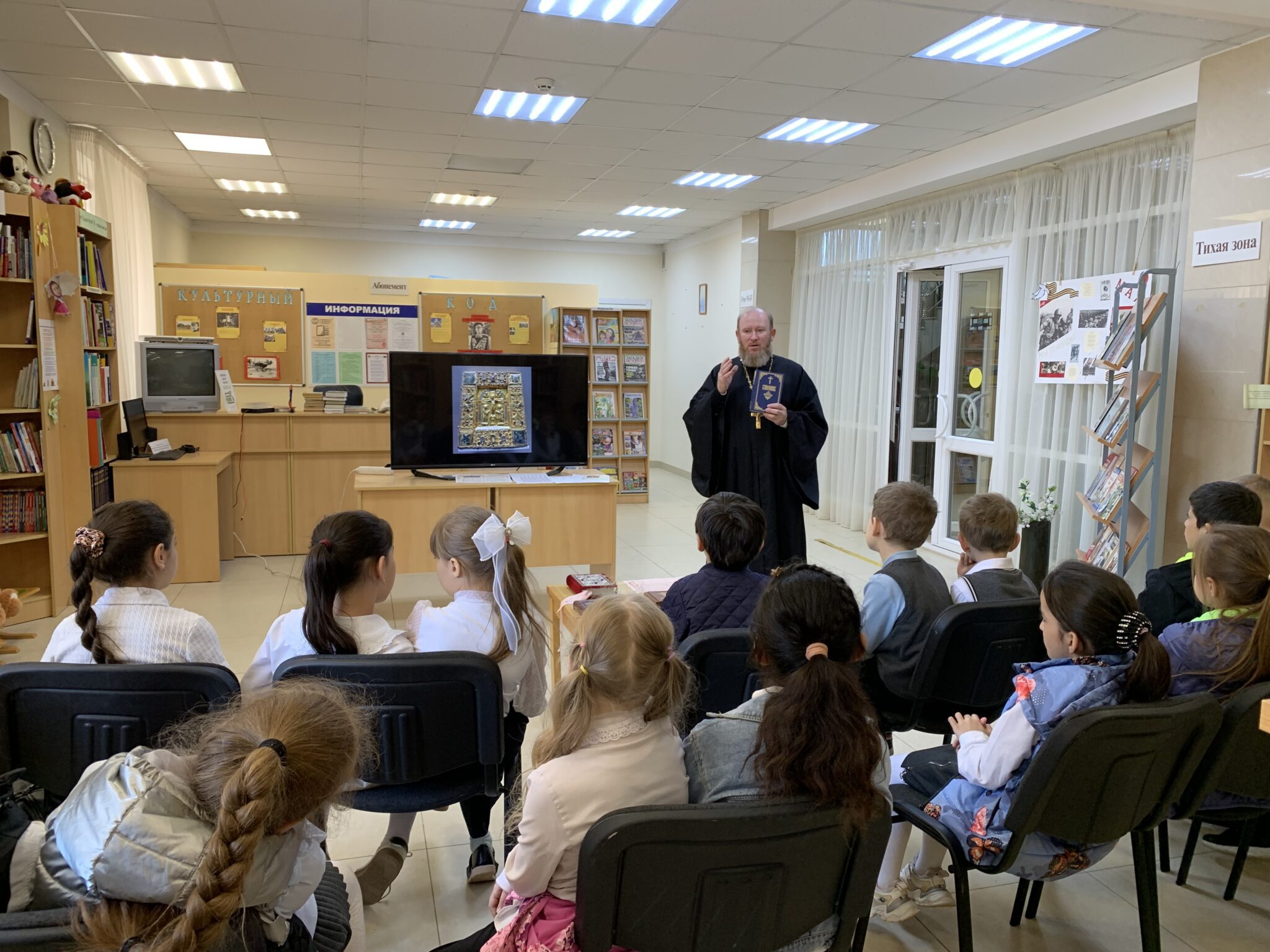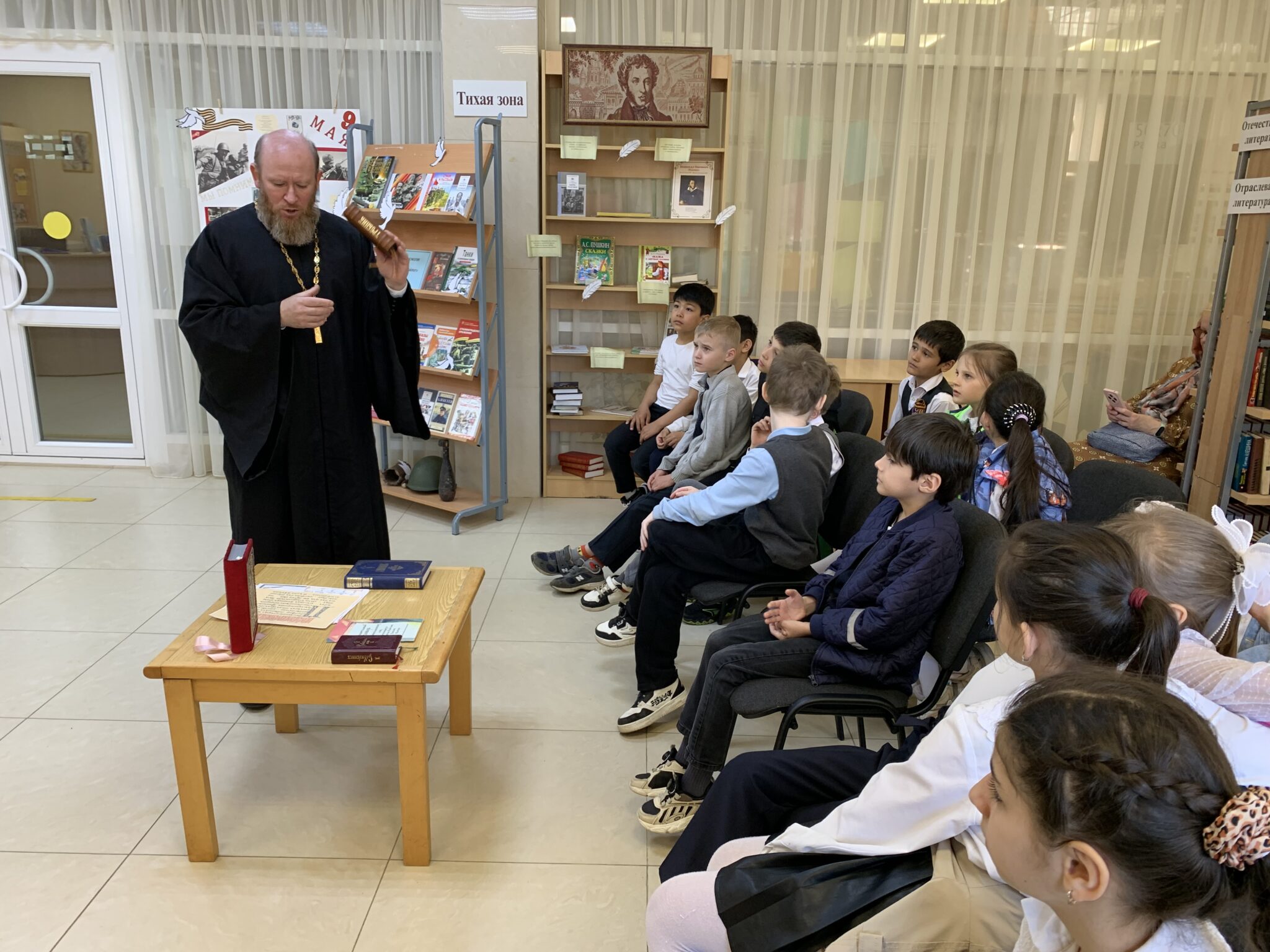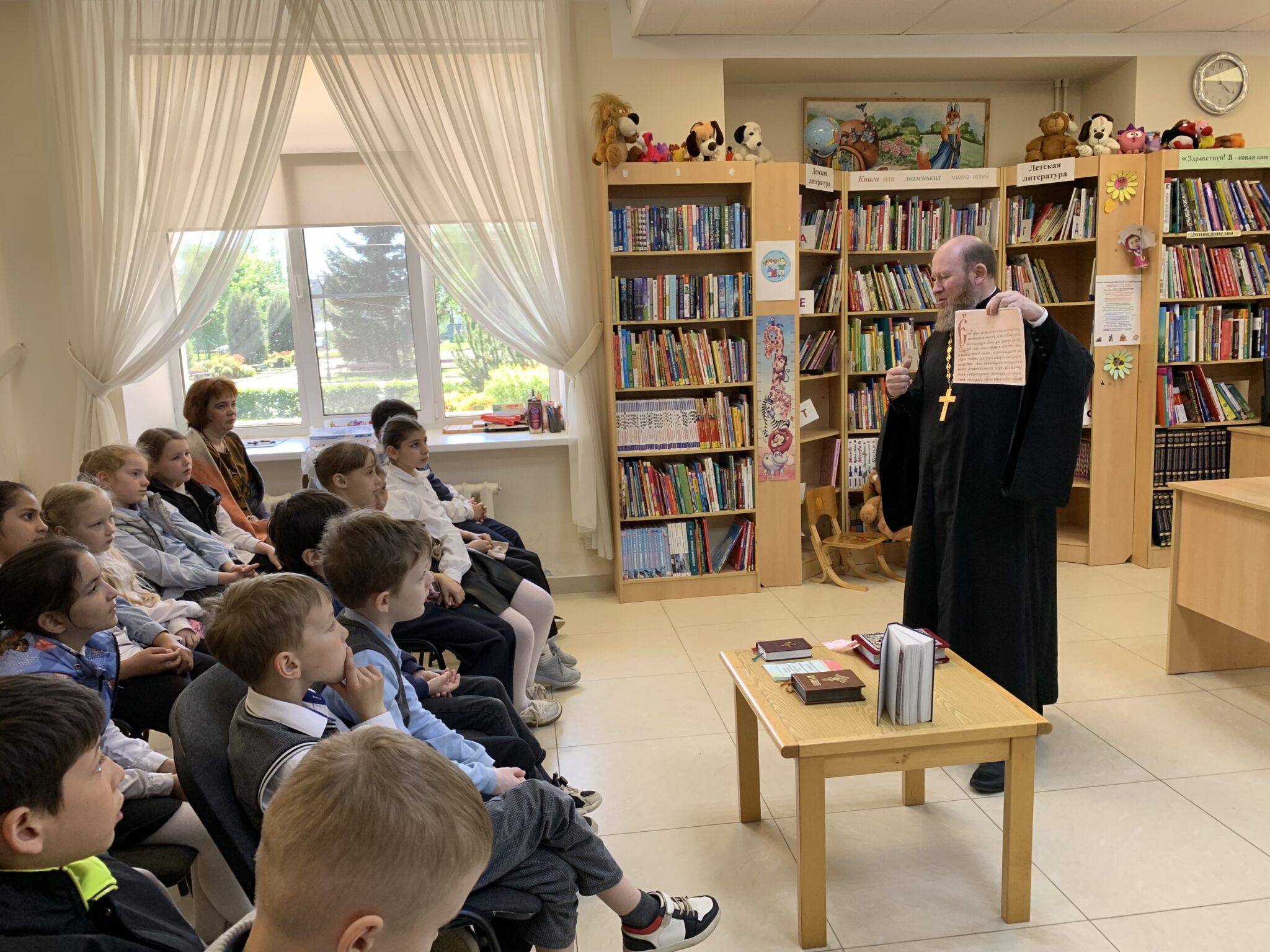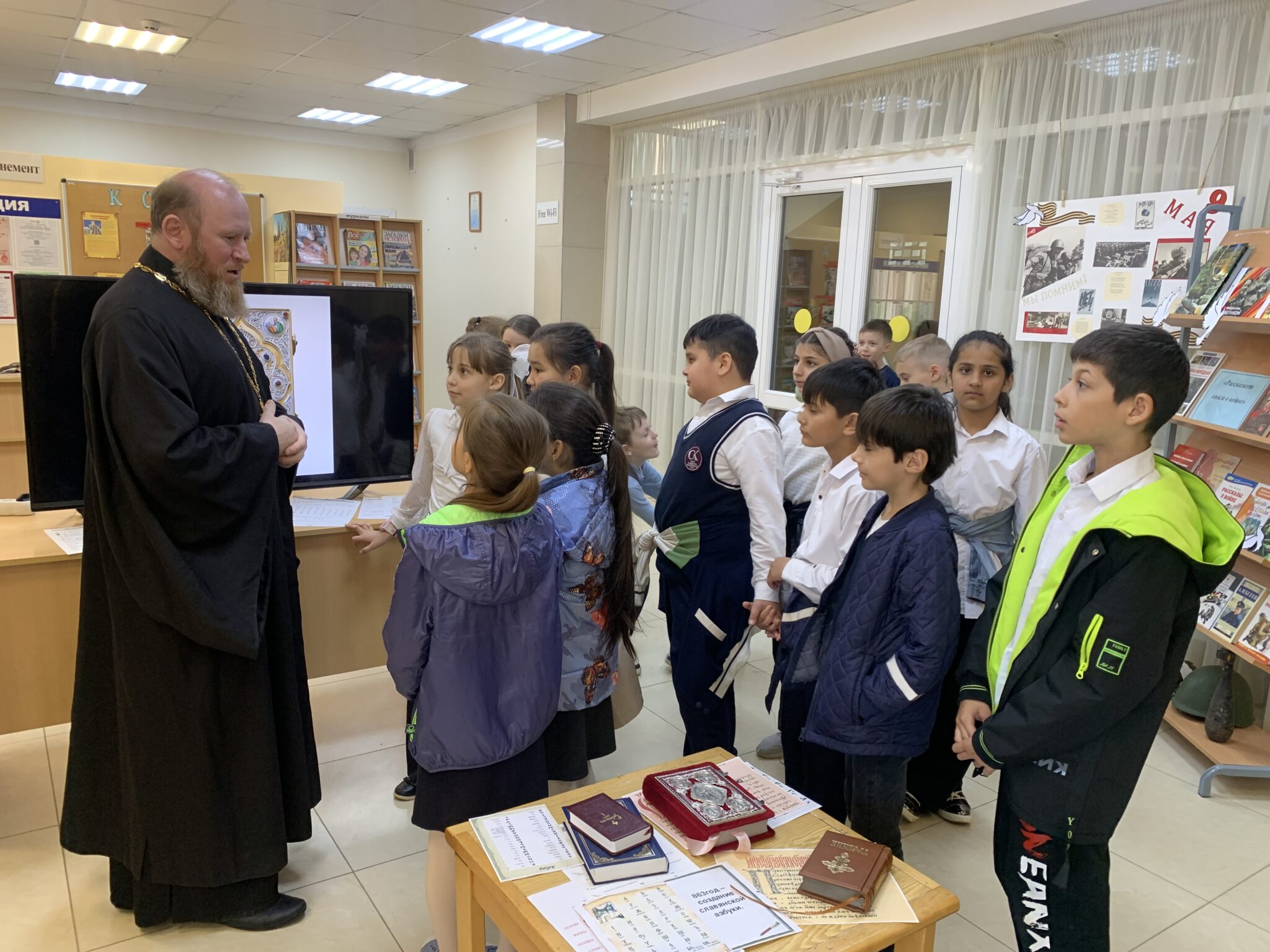 22 мая в рамках празднования Дня славянской письменности и культуры в ДК Каринское состоялась встреча священника Георгия Балог, настоятеля Михаило-Архангельского храма села Михайловское Звенигородского благочиния, с учащимися вторых классов СОШ Каринское. На встрече было рассказано об истории праздника, о духовном единстве и братстве славянских народов. Особый интерес у ребят вызвала история о родных братьях святых равноапостольных Кирилле и Мефодии. После беседы прошёл мастер-класс, на котором ребята попробовали писать пером и чернилами.