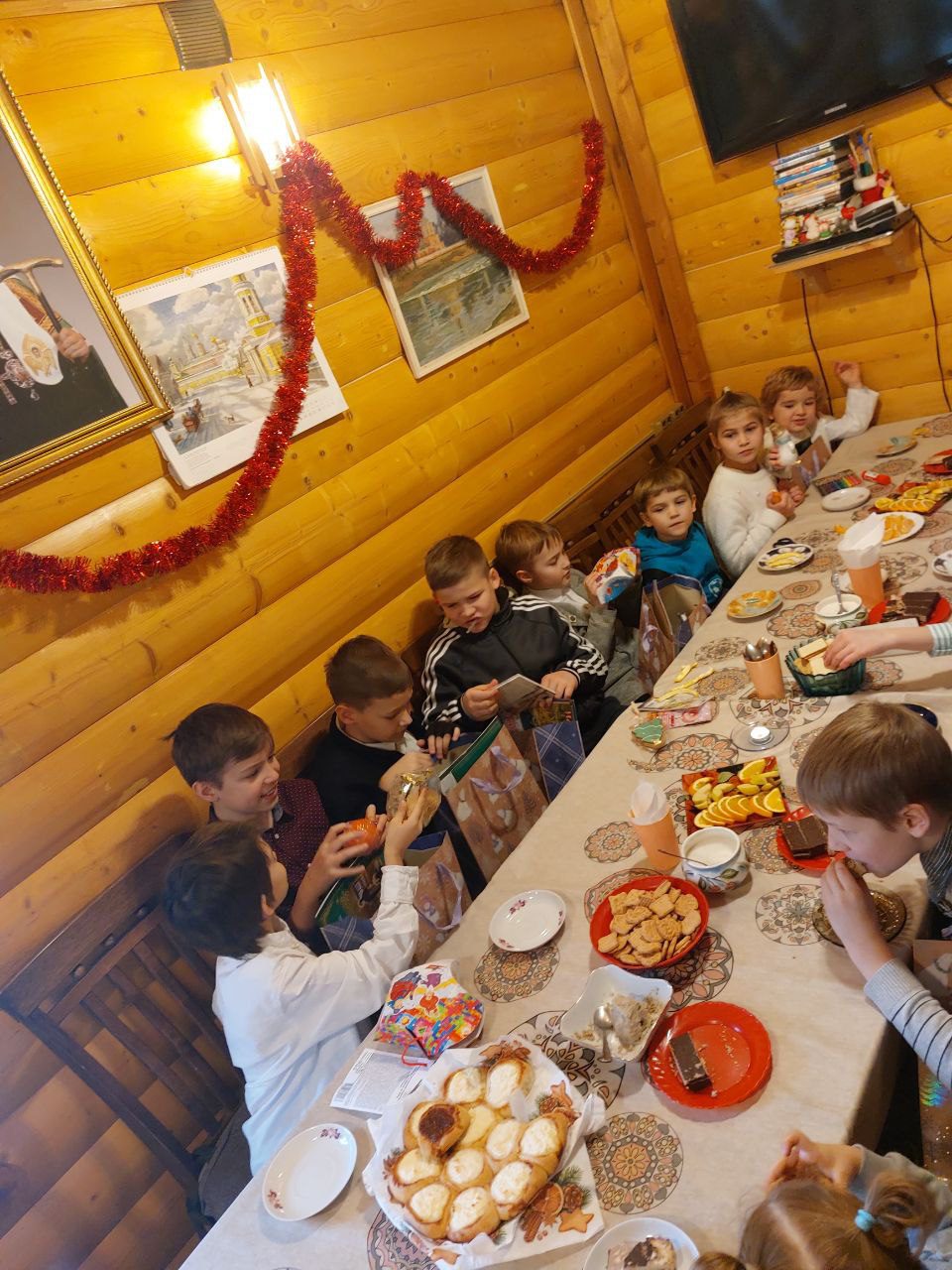 Потом все переместились в трапезную, где было приготовлено угощение и продолжилась Рождественская викторина.