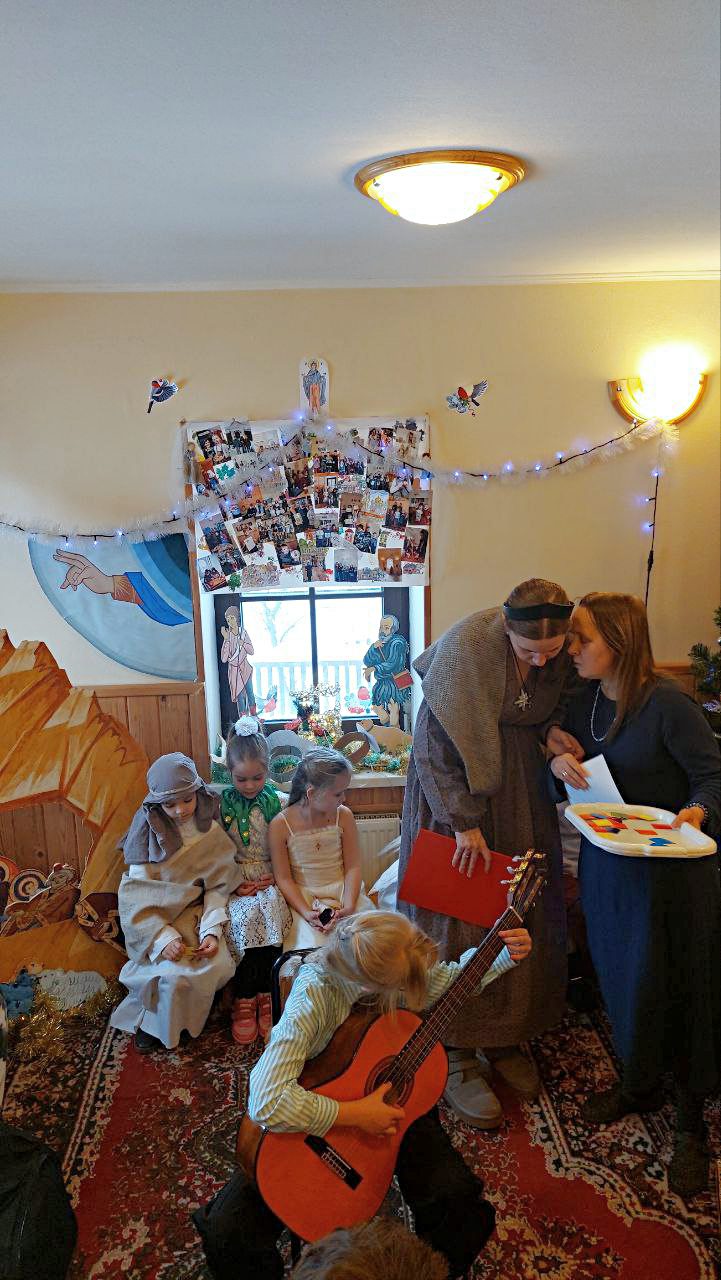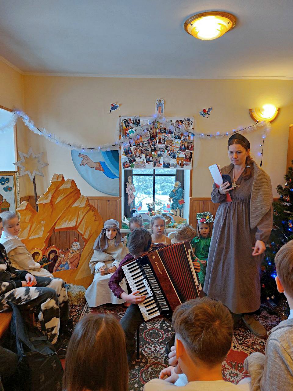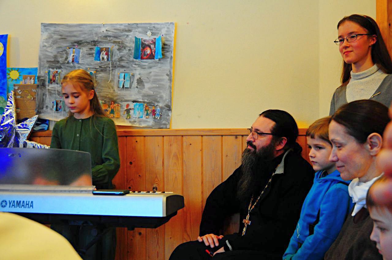 Святочный вечер ребята начали с гимна празднику и доброй Рождественской сказки. Потом были традиционная викторина с призами, пение любимых колядок, чтение веселых стихов и музыкальные номера. В этом году ребята играли на фортепьяно, аккордеоне, гитаре и скрипке. Такого разнообразия музыкальных инструментов ещё не было на приходских праздниках!