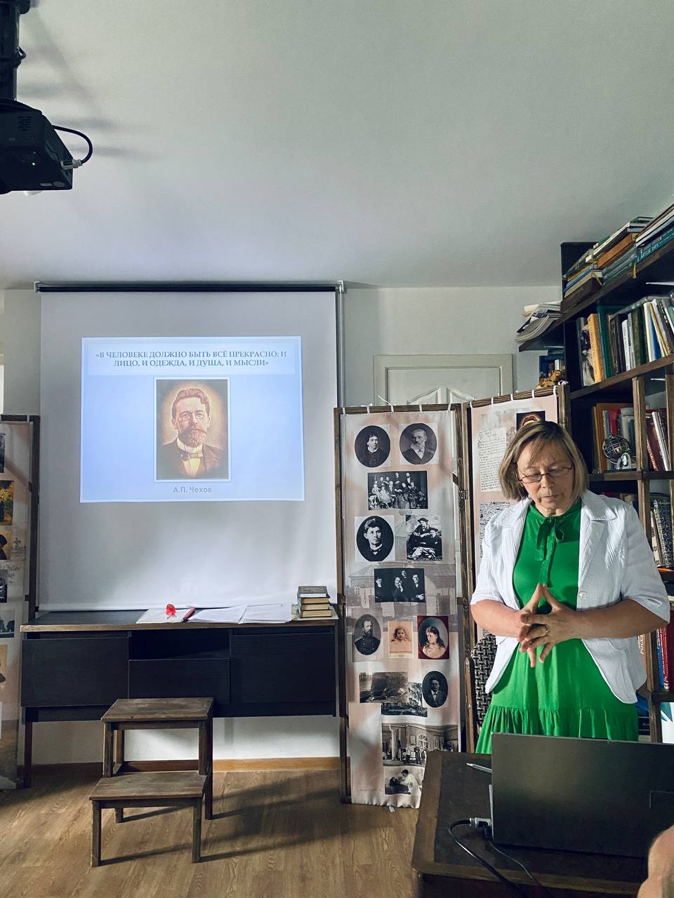 В ход лекции включена презентация, охватывающая весь период жизни семьи, мини-сценка по рассказу Антона Чехова, написанному в Воскресенске, «Сельские эскулапы» и разыгранная экспромтом, музыка, которую слушала семья Чехова.