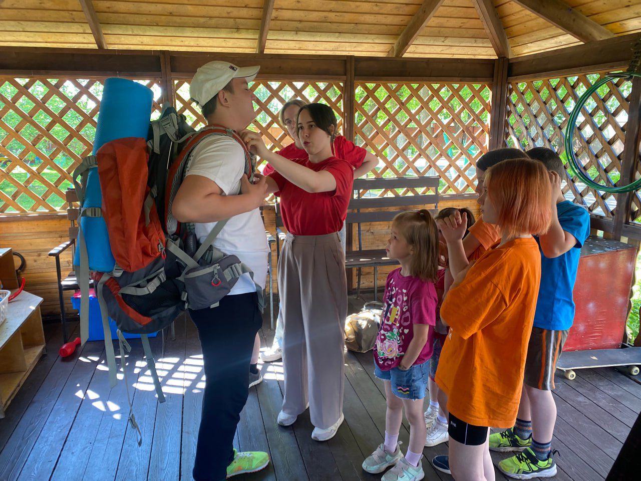 27 мая, ответственный по работе с молодежью Истринского благочиннического округа, священник Пантелеимон Павлушенко вместе с ребятами из молодежного объединения «Добровольцы» Никольского храма с. Никулино посетили семейный центр в Глебово-Избище. Ребята показали как нужно собирать походный рюкзак и палатку и оказывать первую медицинскую помощь в лесу. Встреча закончилась чаепитием и задушевным разговором.
