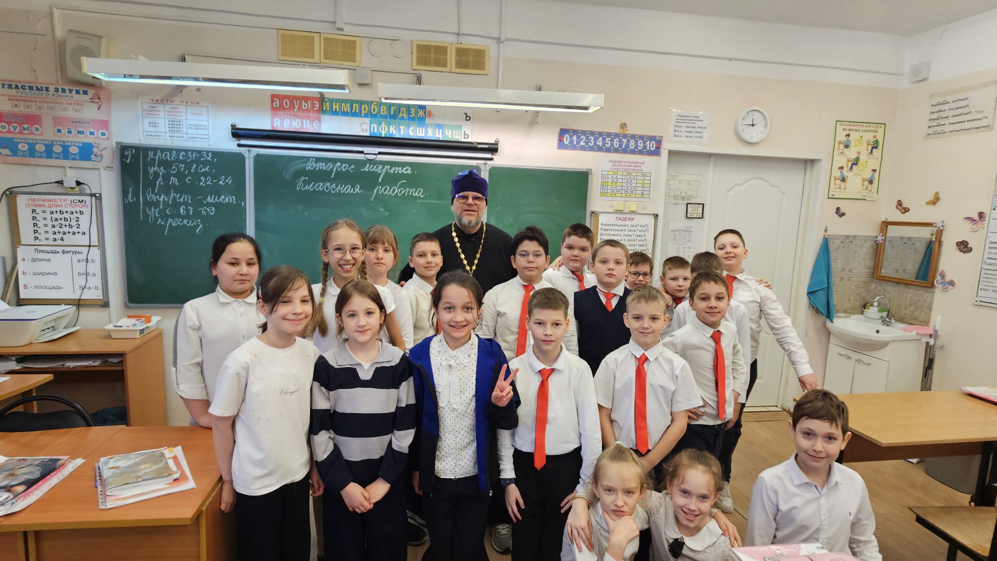 2 марта клирик Знаменского храма г. Красногорска иерей Сергий Генченков встретился с учащимися третьих классов Нахабинской средней школы №2. Священнослужитель посетил поочередно все пять классов. На каждом уроке были затронуты важные вопросы. Говорили о цифровой безопасности, послушании, дружбе и вере.