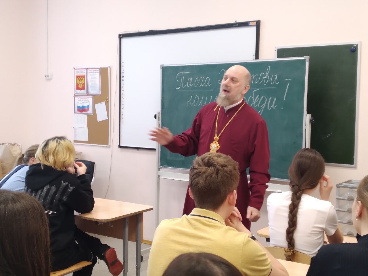 23 мая в рамках акции «Пасха Христова – наша Победа» настоятель Никольского храма с. Николо-Урюпино священник Владимир Крюков провел беседу в 9-х классах Николо – Урюпинской школы. Он рассказал о полководцах ВОВ и участниках СВО, подчеркнув связь поколений в защите Отечества.