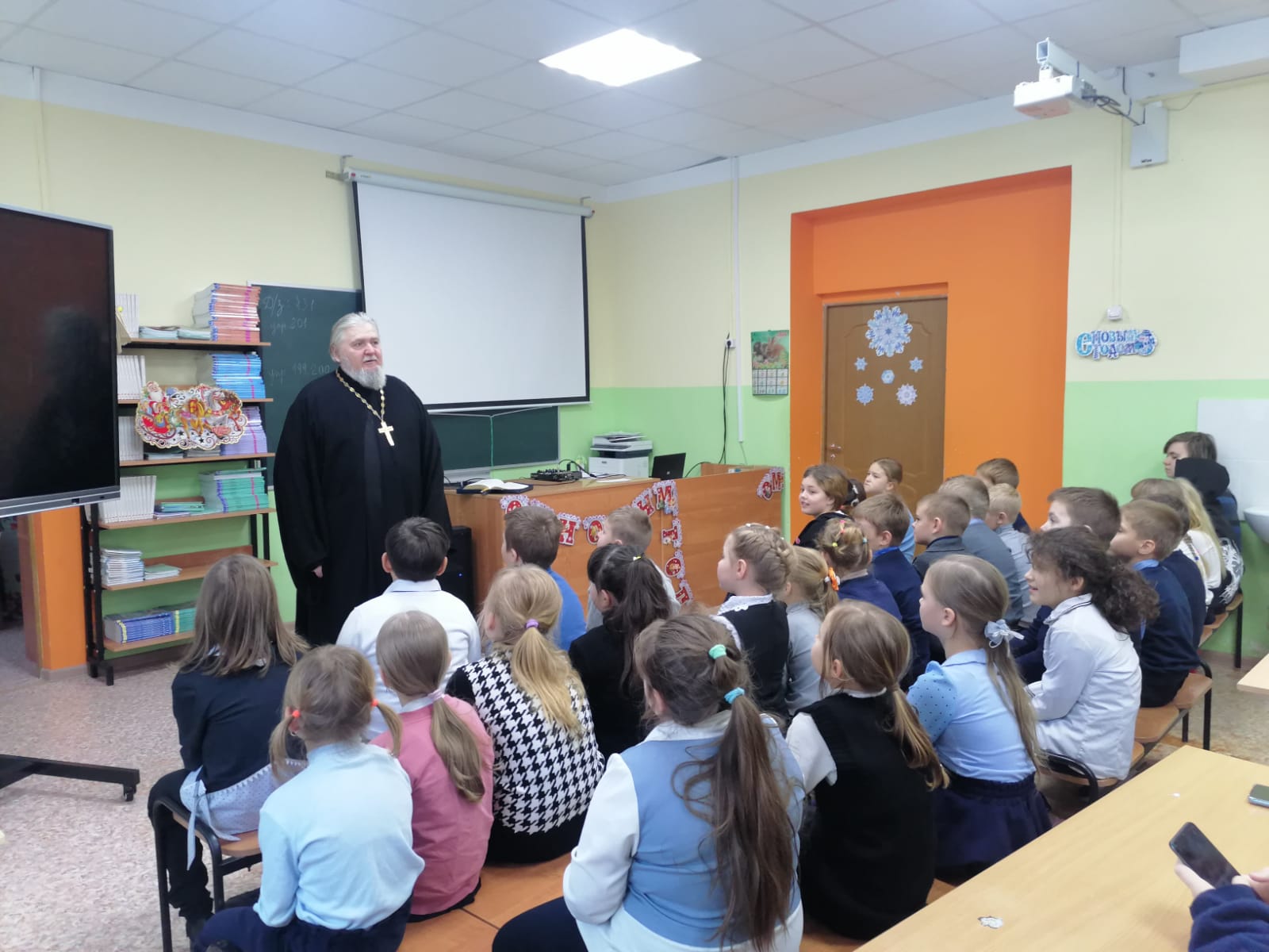 14 декабря в начальном отделении д.Кашино МОУ «Ярополецкая средняя общеобразовательная школа» прошла встреча клирика Богородицерождественского храма с.Суворово священника Андрея Сергейчука со школьниками, в ходе которой батюшка ответил на вопросы, интересующие детей.