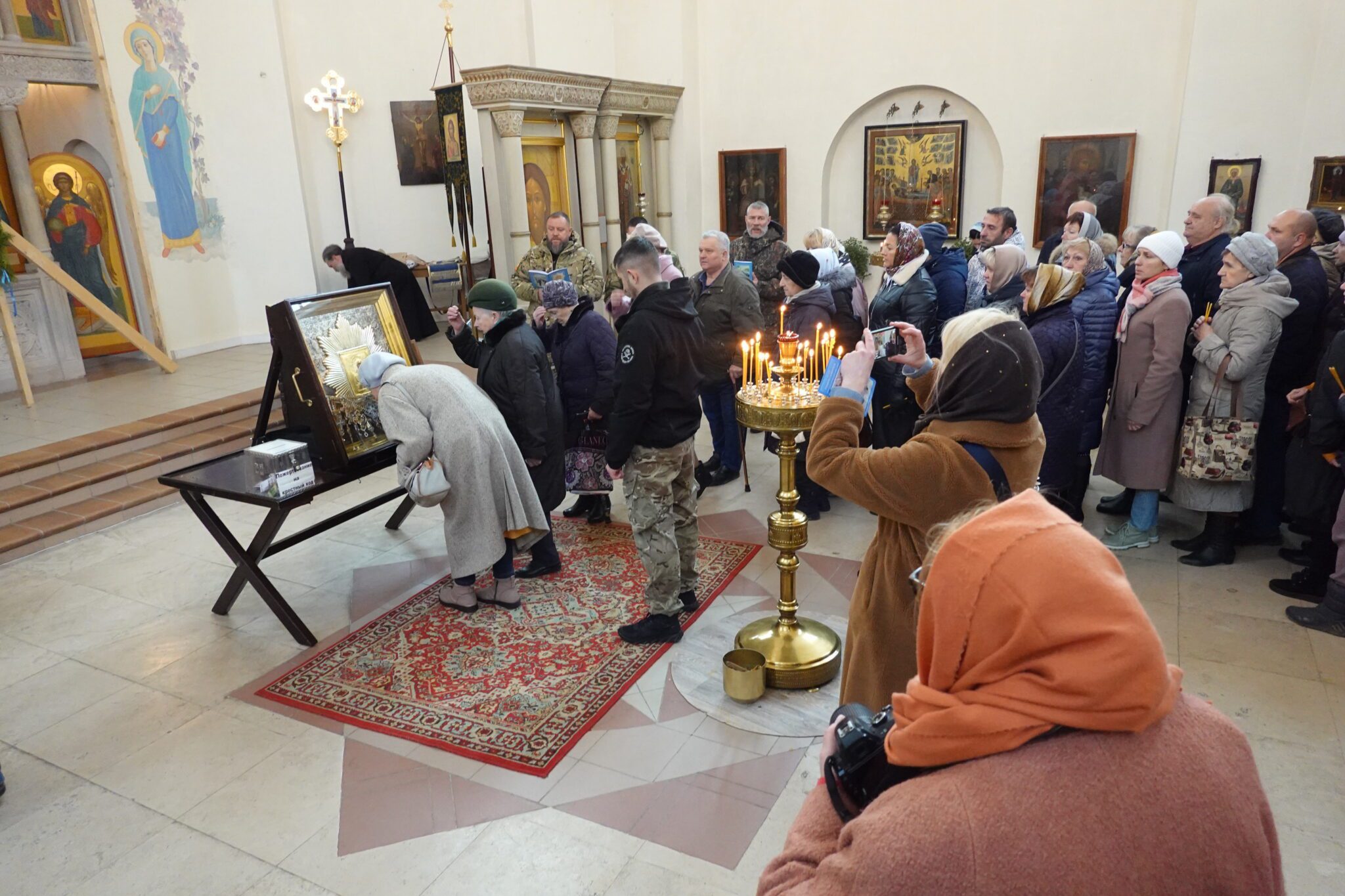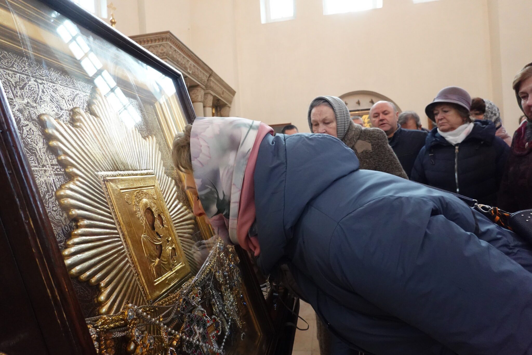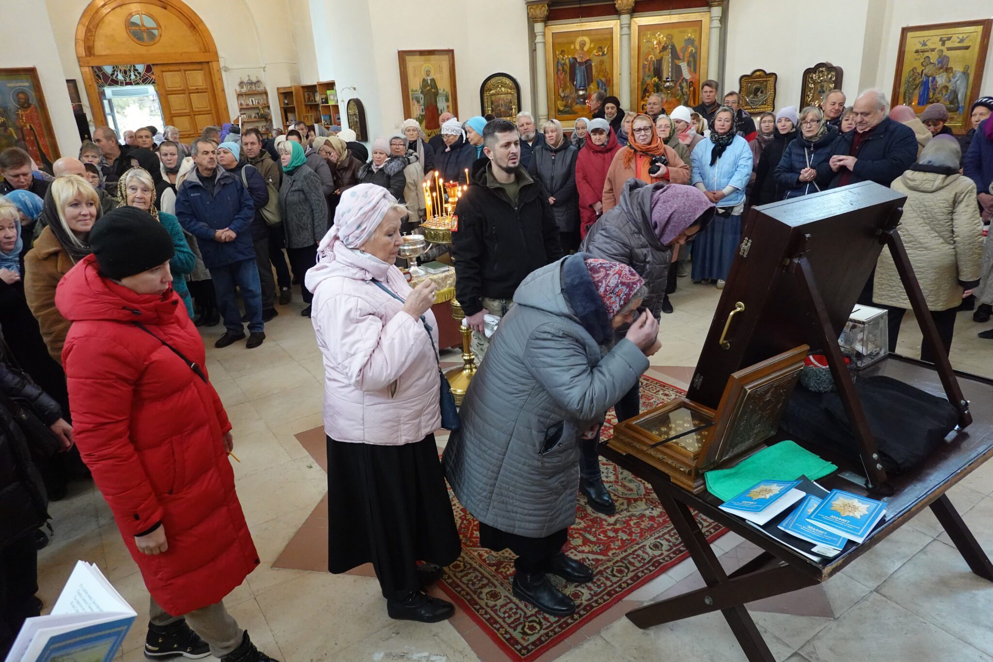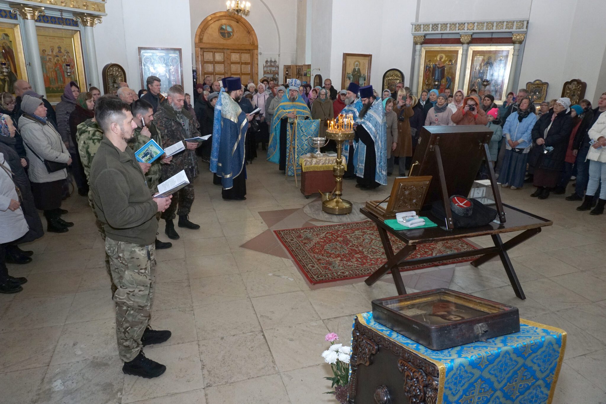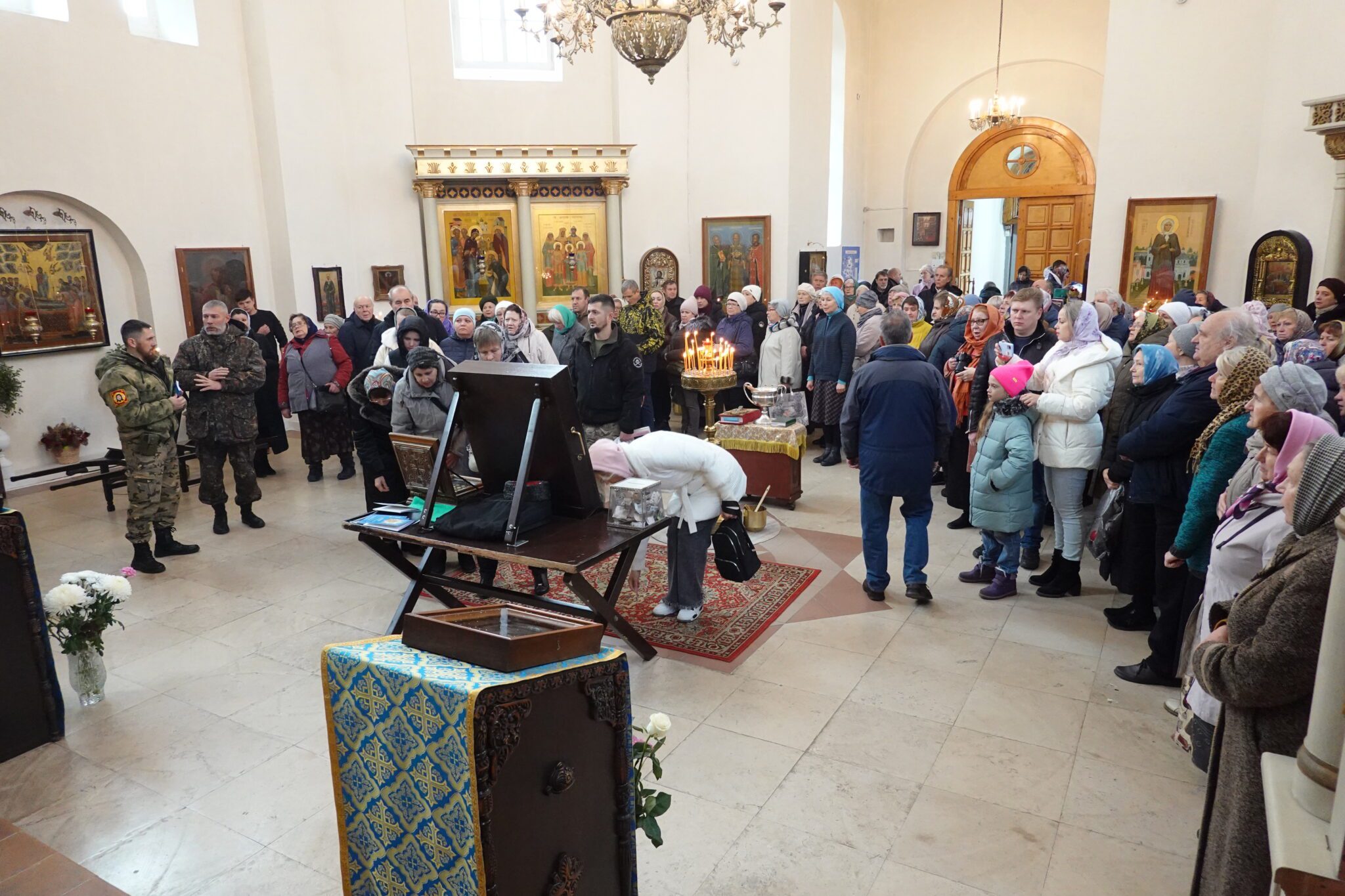 После тёплой встречи крестный ход проследовал в храм, где отслужили молебен с Акафистом. После кратких выступлений гостей и приветственного слова благочинного был совершён крестный ход вокруг храма, затем казаки с иконой двинулись по храмам благочиния.