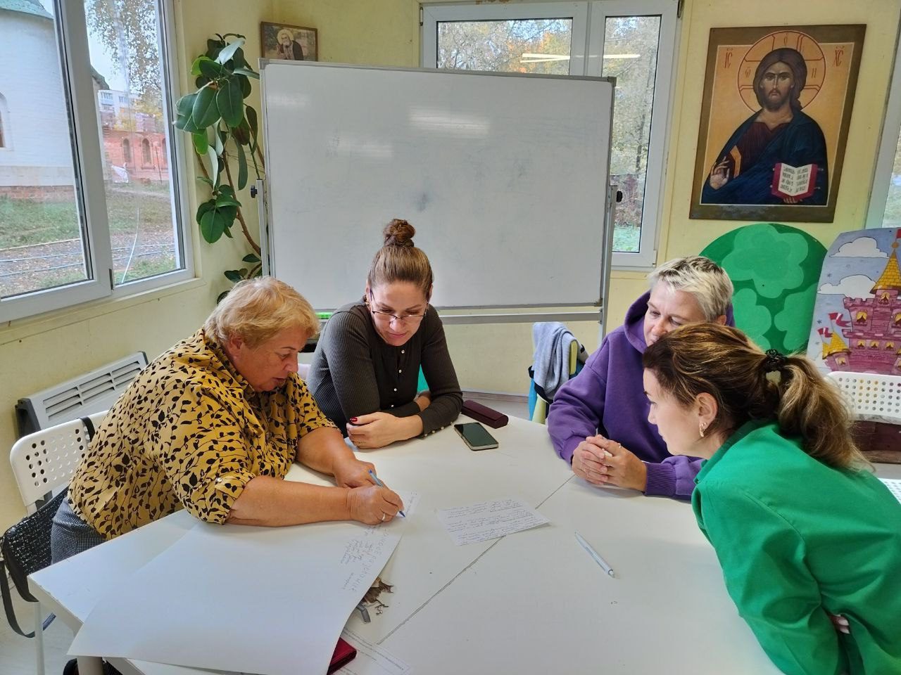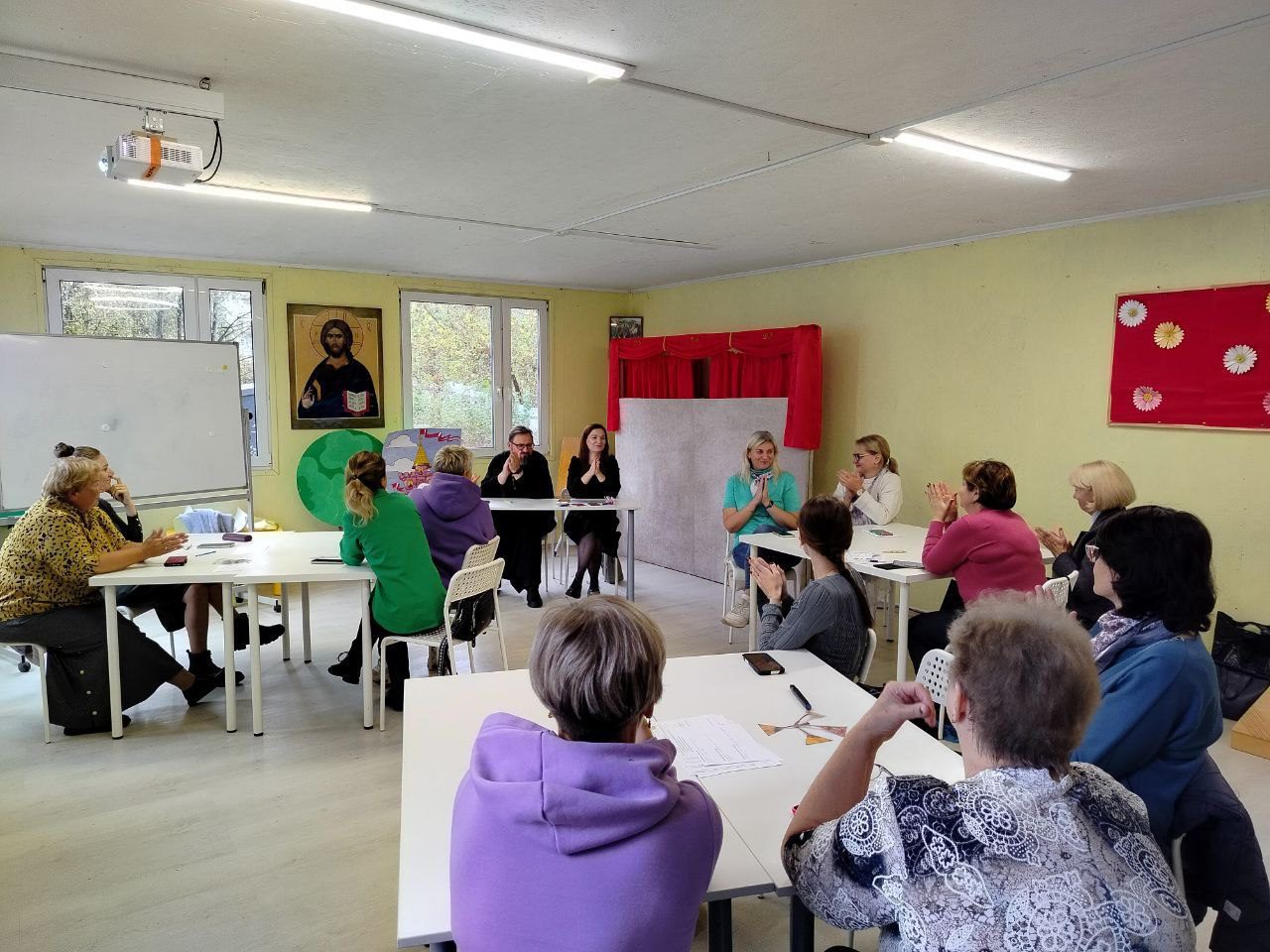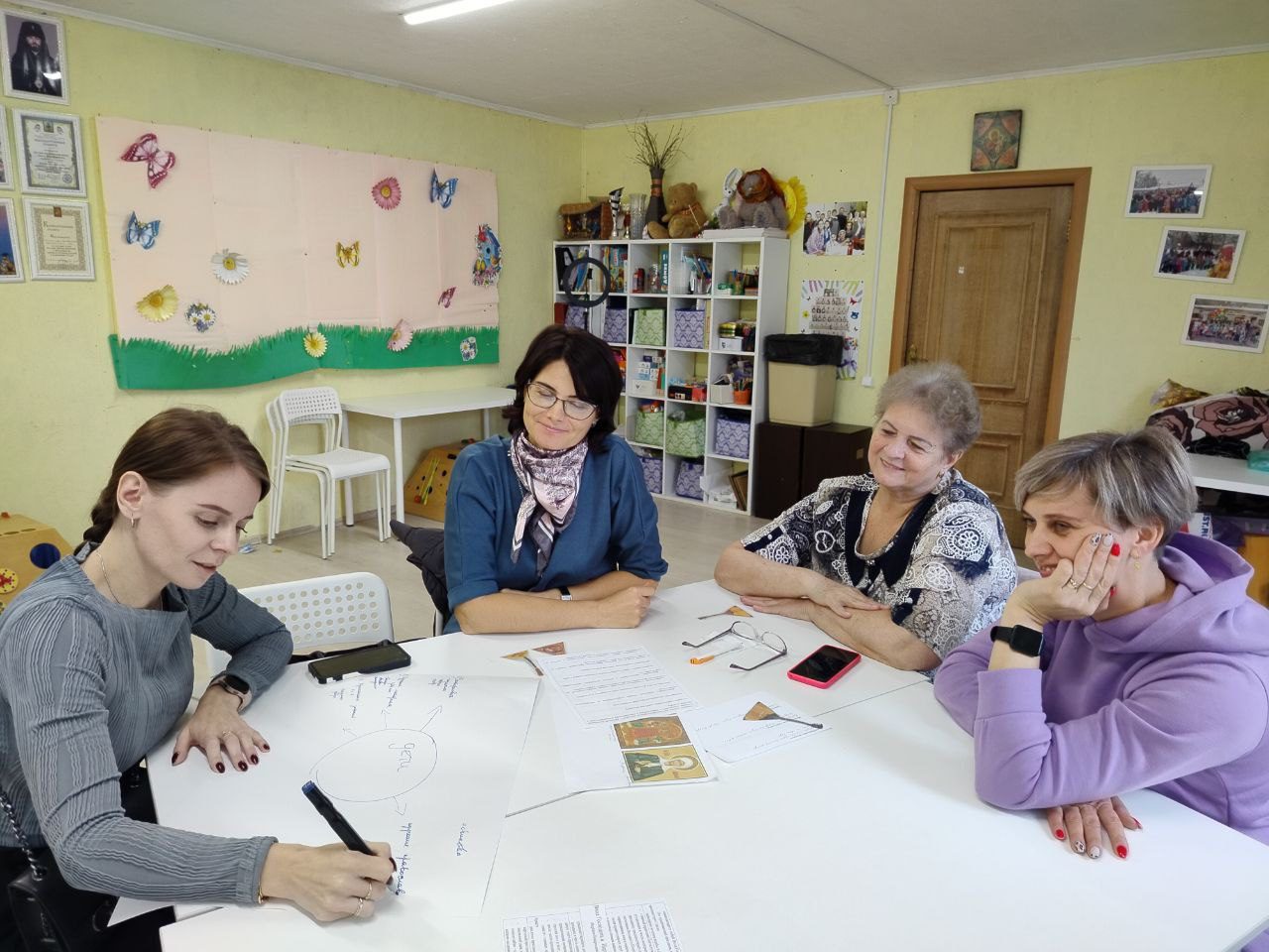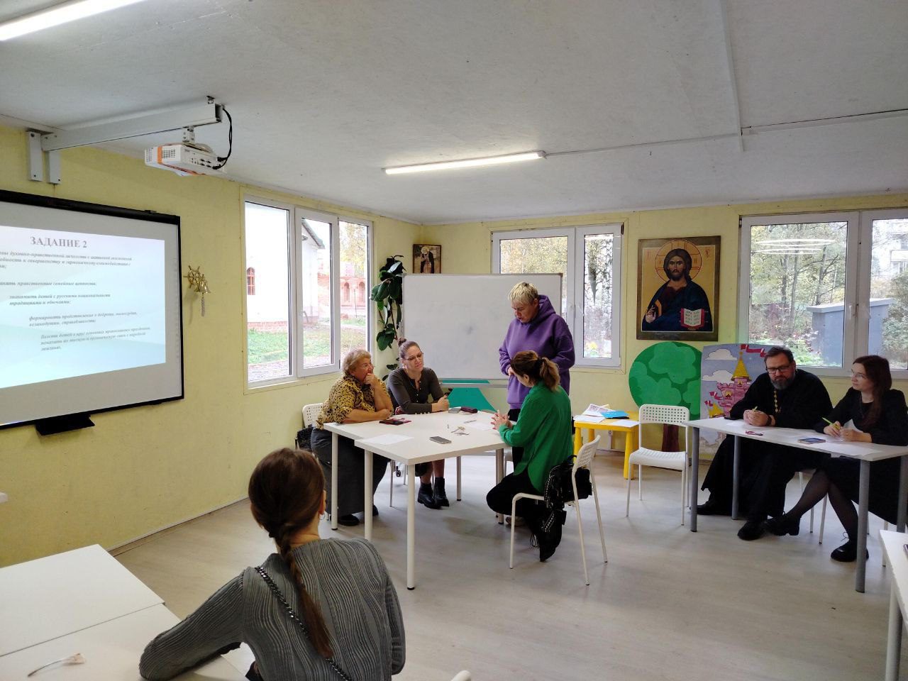 Педагоги разделились на команды и выполняли различные задачи, отвечали на вопросы, составили примерные планы по развитию духовно-нравственного воспитания дошкольников и поделились своим опытом по данной теме.