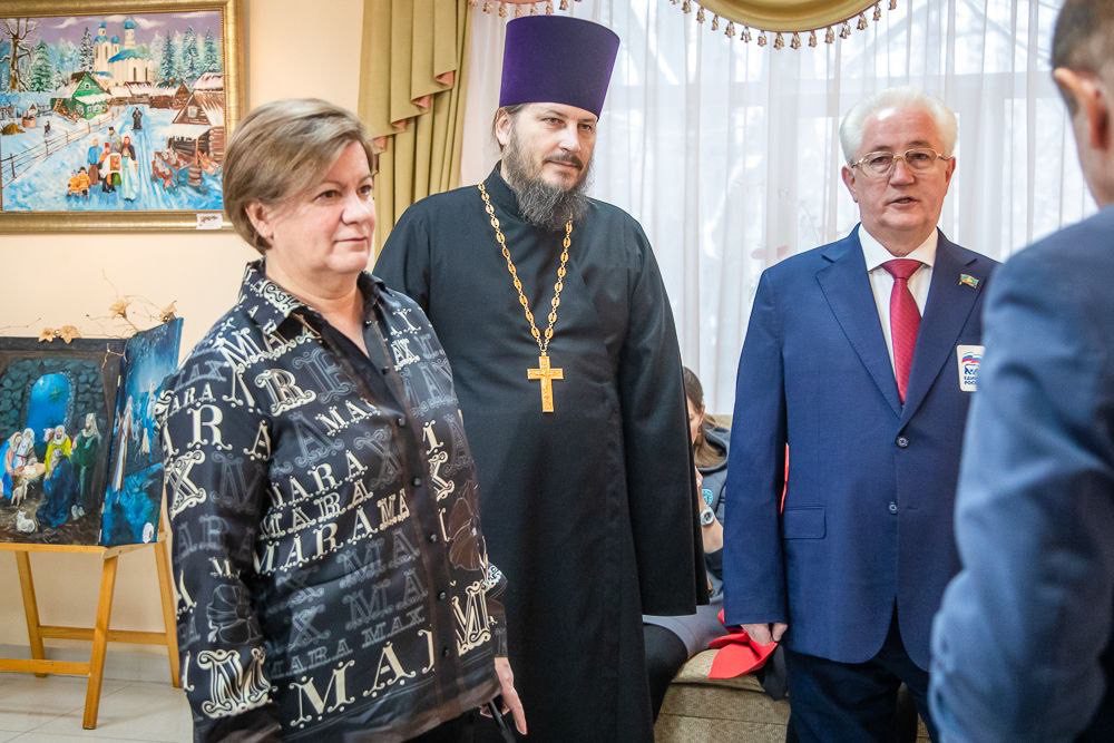 По доброй традиции поздравить юных художников прибыли гости, которые обратились со сцены со словами поздравления и приветствия к собравшимся в зале участникам и гостям конкурса, а также вручили награды победителям. Со сцены прозвучали приветствия Первого Заместителя Московской областной Думы Л. Е. Лазутиной, ответственного за религиозное образование и катехизацию Одинцовской епархии священника Владислава Гусара, депутатов Совета депутатов Одинцовского городского округа Владимира Виницкого, Вячеслава Киреева, Владимира Бережанского, Александра Гусева, начальника отдела социальных коммуникаций и дополнительного образования Ю. Куликовой.