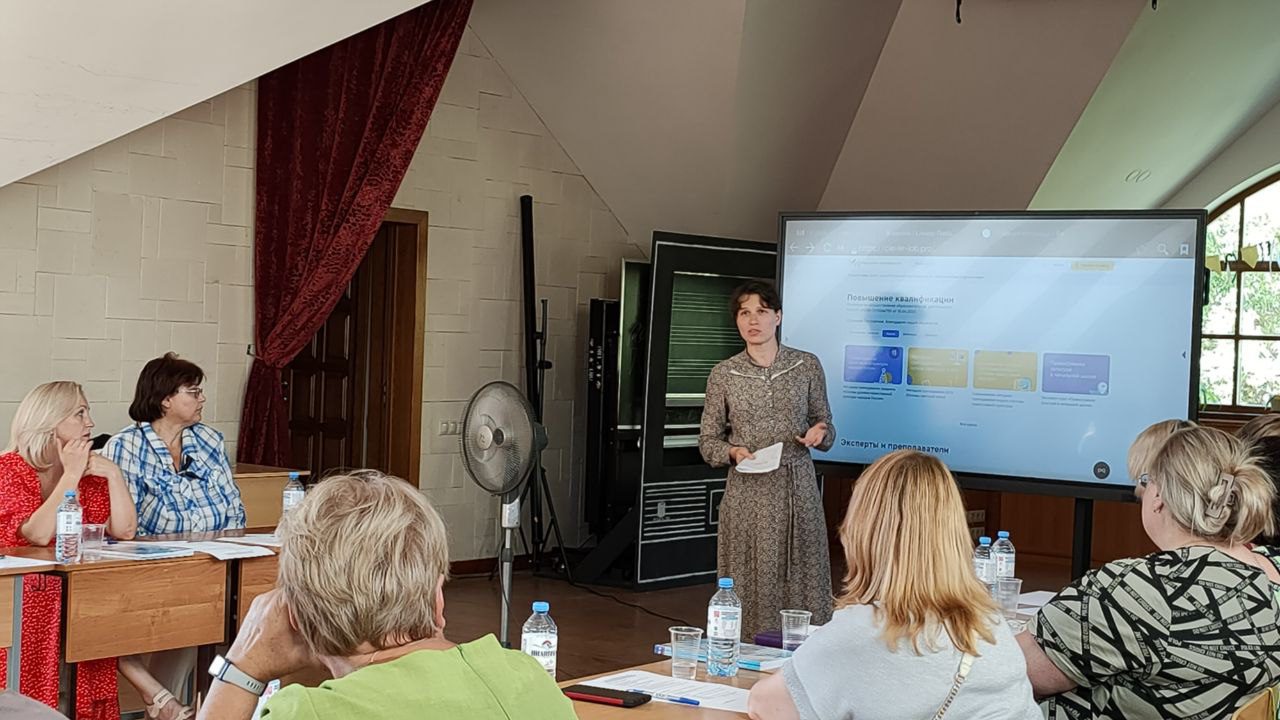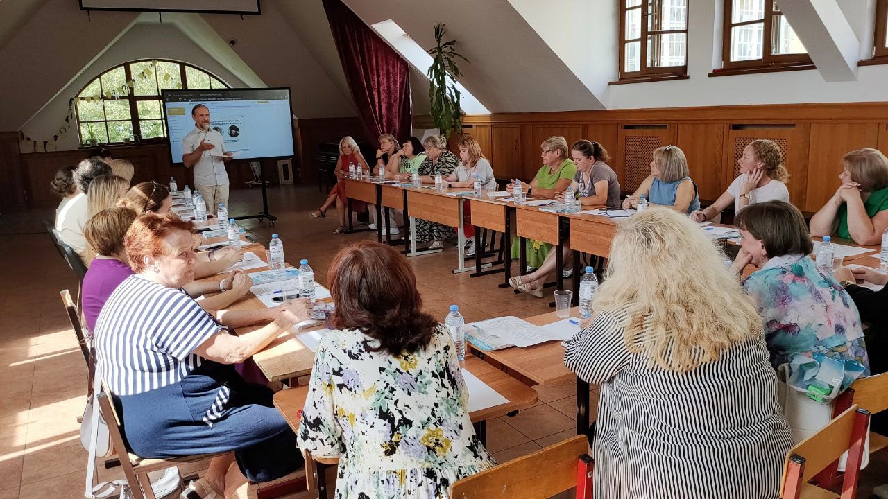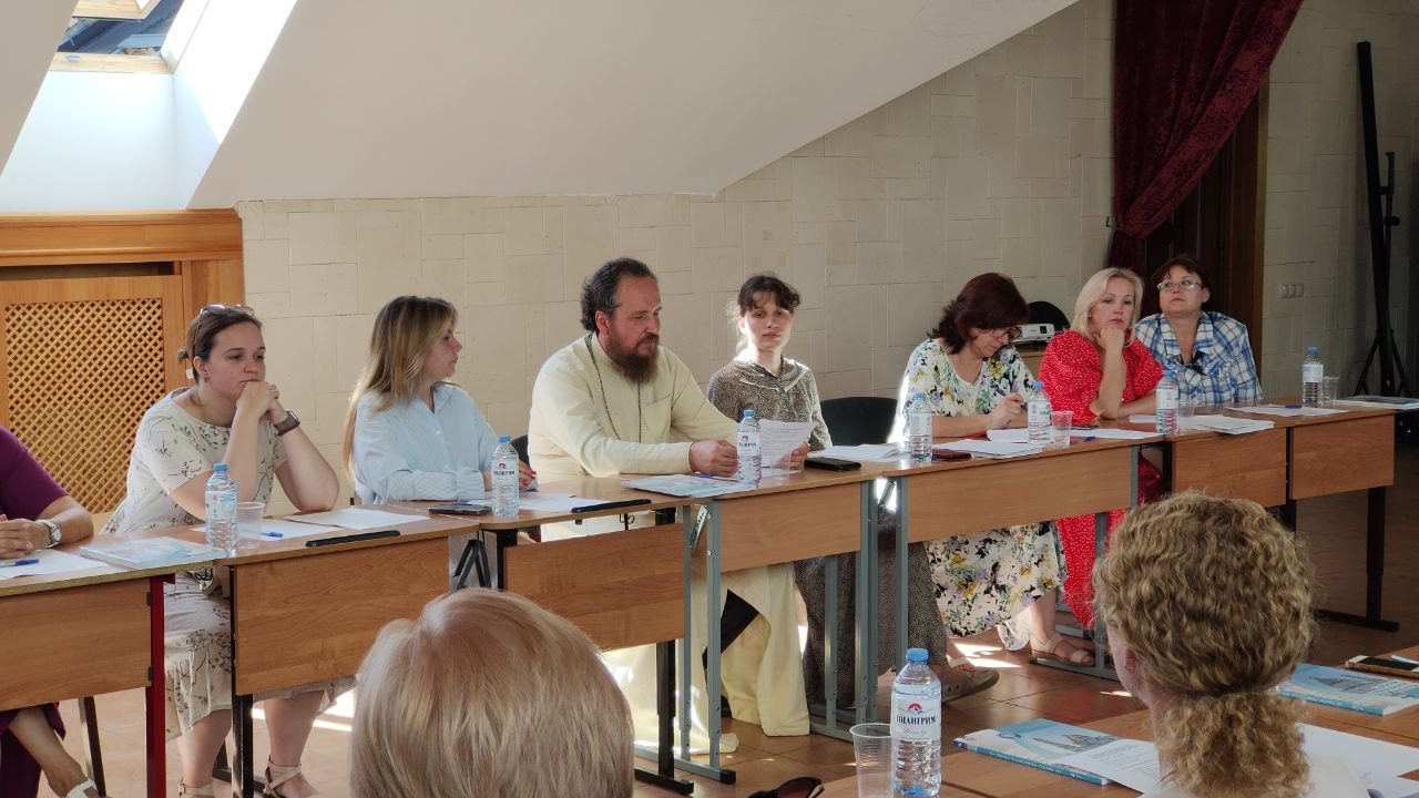 26 августа в актовом зале МАОУ “Православная гимназия во имя преподобного Саввы Сторожевского” г. Звенигорода состоялось заседание секции Августовской педагогической конференции для педагогов духовно-нравственной культуры города Звенигорода и его окрестностей. В заседании принимали участие педагоги, готовящиеся вести уроки по предметам православной культуры в 2024-2025 учебном году, методист Одинцовского Учебно-Методического Центра «Развитие образования» Комаров Н. Л., член епархиального отдела Религиозного образования и катехизации протоиерей Александр Карлюк, директор “Православной гимназии во имя прп. Саввы Сторожевского” г. Звенигорода Дудина И. Н., руководитель городского методического объединения учителей духовно-нравственной культуры г. Звенигорода Куренкова Н. А.