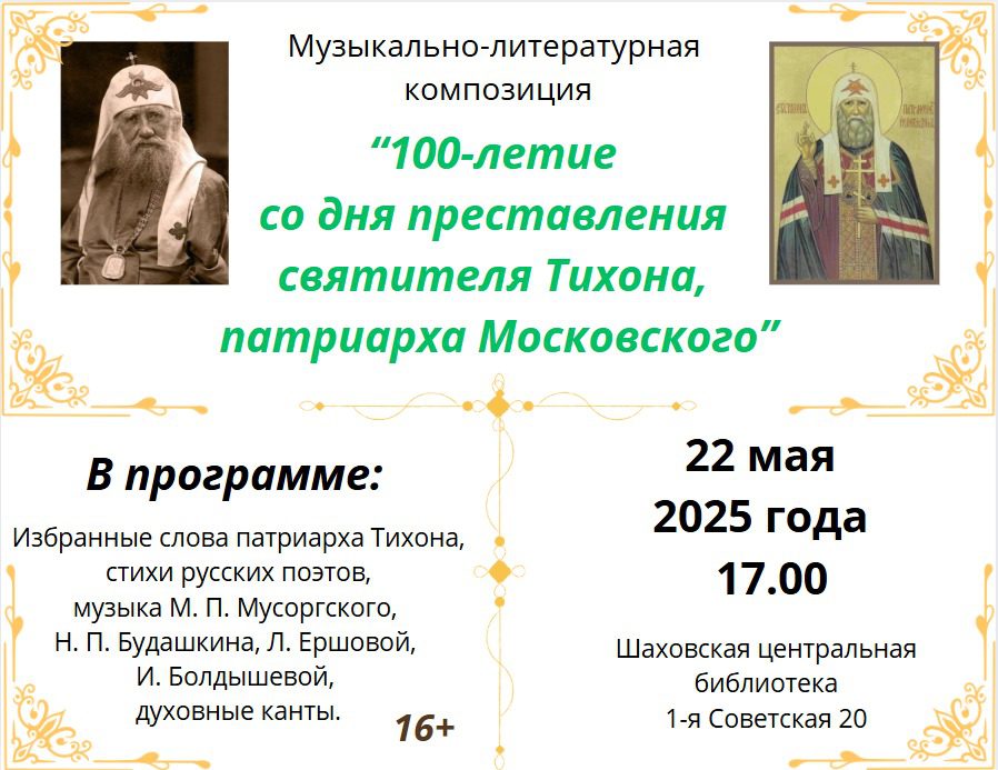 22 мая в музее п.Шаховская состоялся вечер, посвященный памяти “100-летия преставления святителя Тихона патриарха Всероссийского.”