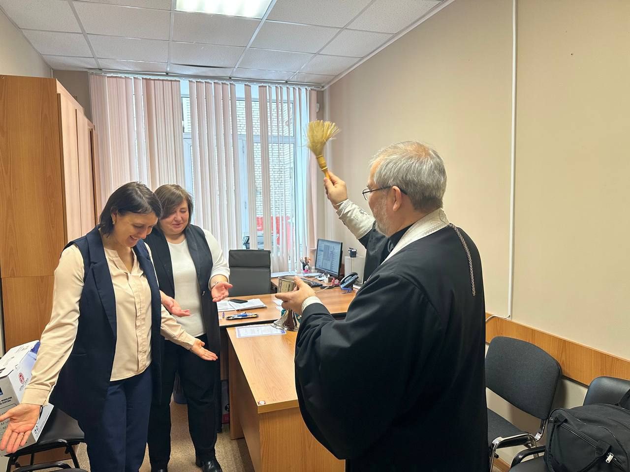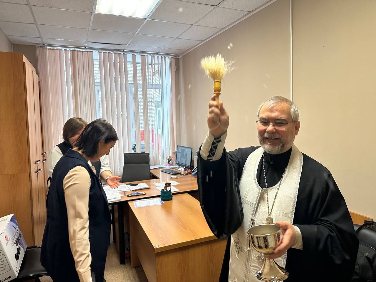 По уже сложившейся доброй традиции отец Максим вместе с руководством и преподавателями колледжа совершил краткий праздничный молебен, рассказал о смысле праздника Богоявления, после чего окропил крещенской водой всех желающих, а также учебные аудитории и помещения колледжа.