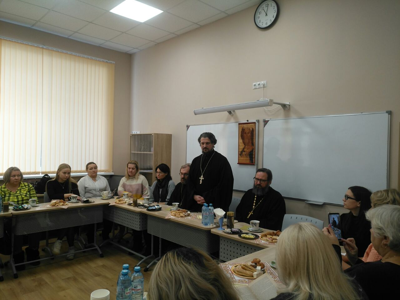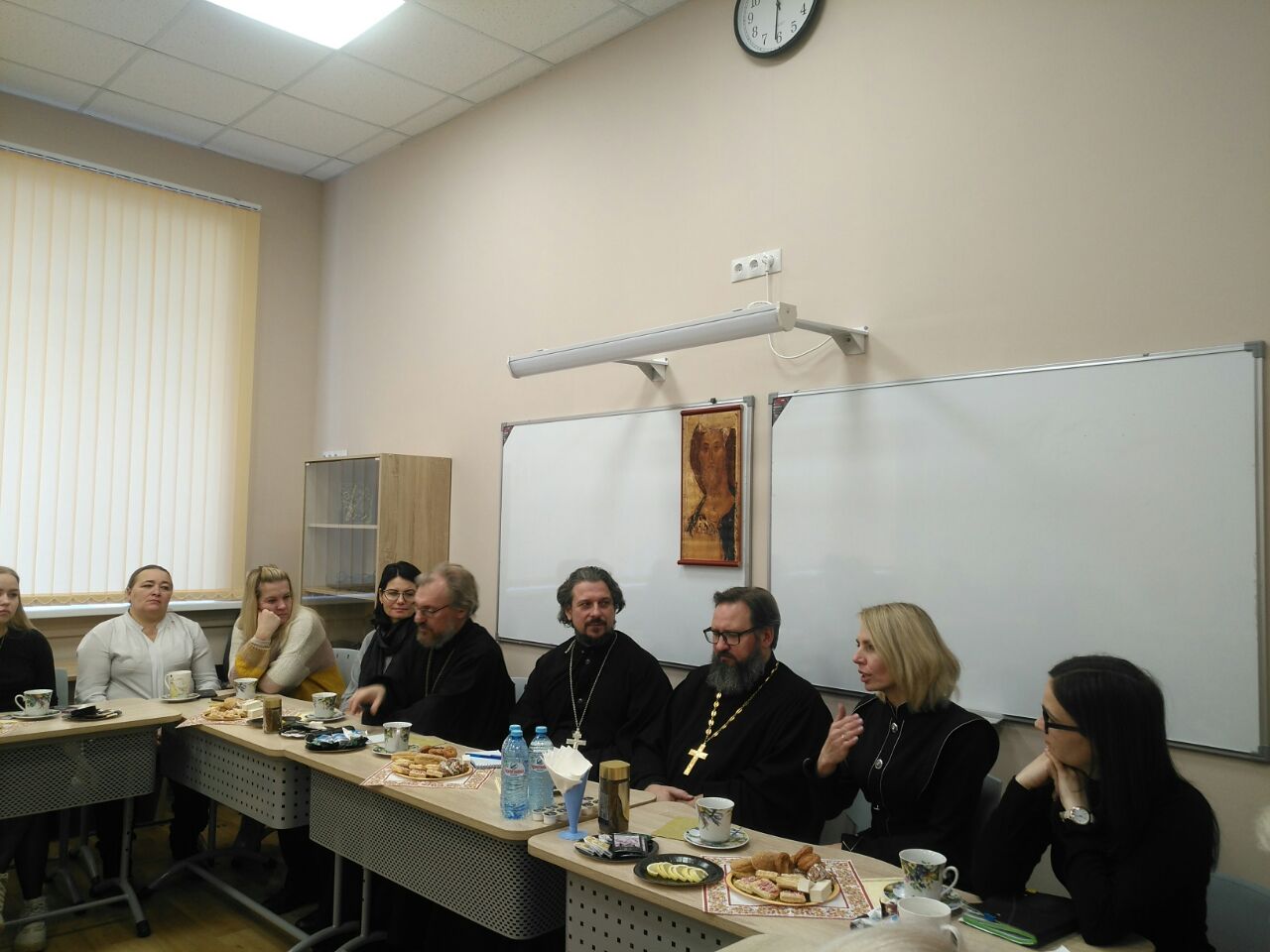 22 ноября в рамках осуществления согласованного плана мероприятий Рождественских чтений между Управления образованием г.о. Истра и Истринского благочиннического округа был организован круглый стол с педагогами общеобразовательных организаций и воспитателями дошкольных учреждений городского округа Истра. Гостей радушно встретила Чеховская средняя школа города Истры.