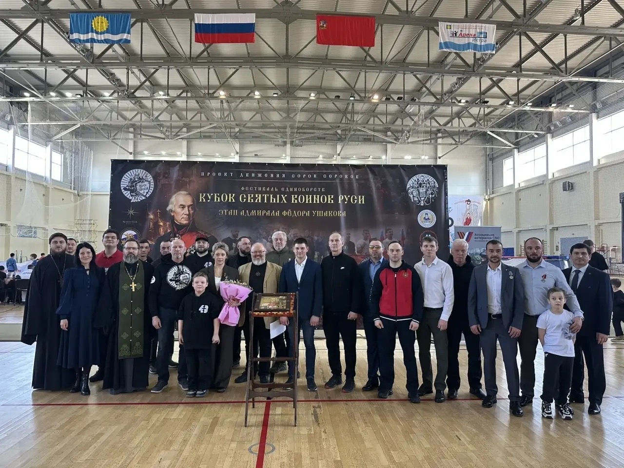 21 марта в спорткомплексе «Арена-Истра» прошел второй этап всероссийского «Кубка святых воинов Руси» среди детей, занимающихся такими видами единоборств, как бокс, самбо и армейский рукопашный бой. Организатором соревнований выступило движение «Сорок Сороков» при поддержке Патриаршей Комиссии по вопросам физической культуры и спорта. Перед началом состязаний с приветственным словом к участникам обратился и.о. благочинного Истринского округа иерей Павел Малкин. “Истринский этап посвящен святому Федору Ушакову, великому флотоводцу, не проигравшему ни одного сражения и являющему собой ярчайший пример мужества, чести и жертвенного служения Отечеству. Важно помнить о неразрывной связи ратного подвига и православной веры и применять силу только для защиты своей веры, семьи и Родины”, – отметил священник. Отец Павел в сослужении иерея Арсения Коновалова, заместителя епархиального ответственного по вопросам физической культуры и спорта Одинцовской епархии, совершил молебен перед иконой св. Федора Ушакова из Мироносицкого храма, которая уже несколько раз была в полевых храмах в зоне СВО и перед которой молятся российские военнослужащие, защищающие сегодня наше Отечество. После общей молитвы о. Павел окропил всех присутствующих святой водой. Перед началом поединков юные спортсмены вместе с наставниками и родителями прикладывались к святому образу.