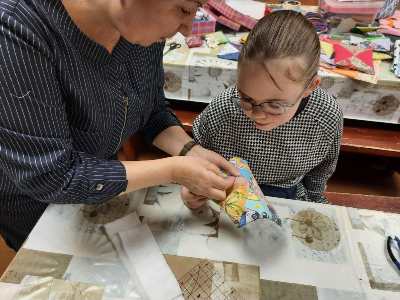 23 ноября, специально к Дню матери, в воскресной школе Данииловского храма пос. Нахабино прошел мастер-класс Калининой Жанны Николаевны по лоскутному шитью. Участники познакомились с историей и традициями лоскутного шитья разных народов, узнали, как сделать прихватку, коврик и покрывало на примере изготовления блока “Есенинского одеяла”, смогли поработать на швейных машинках и вручную.
