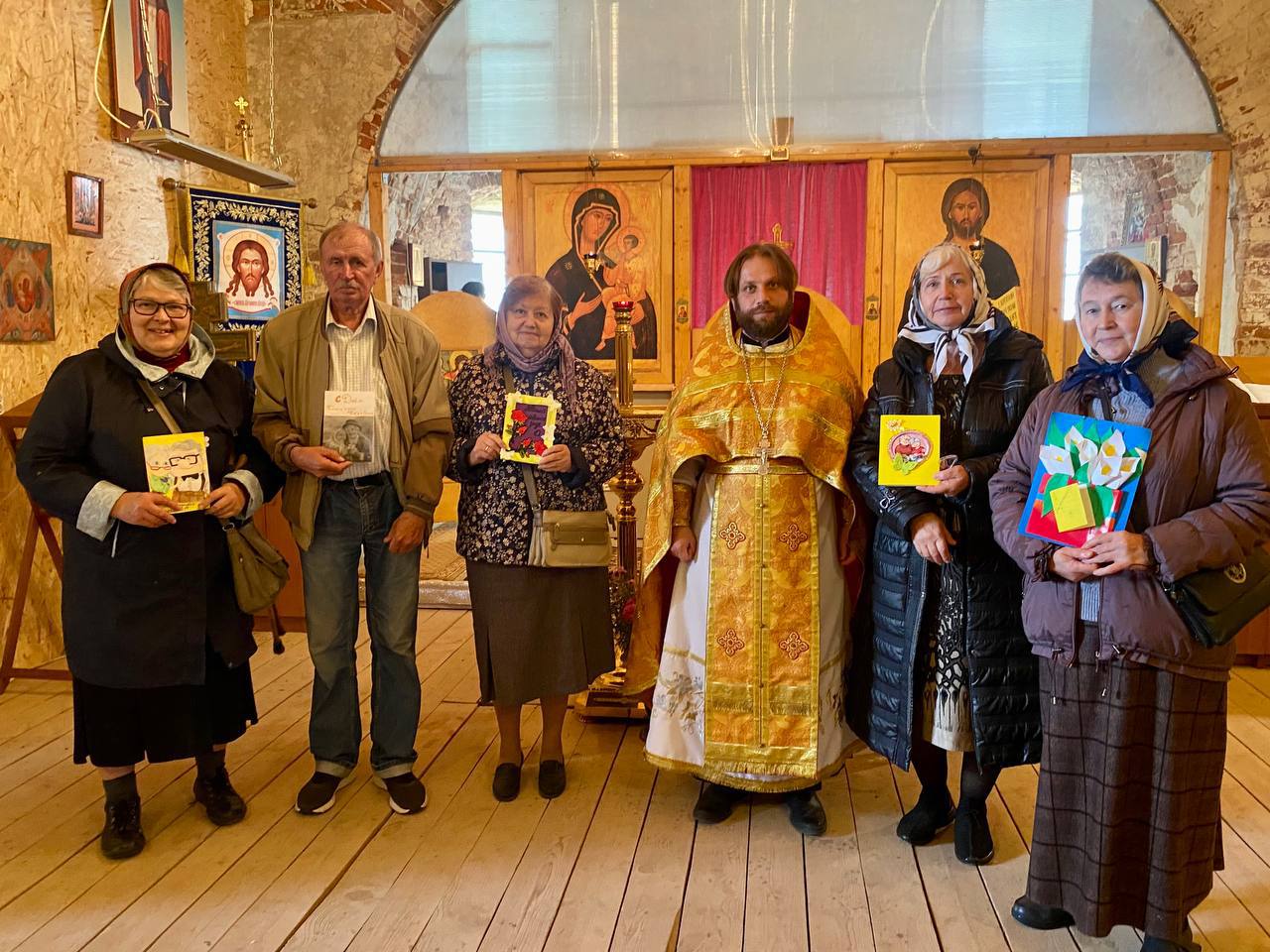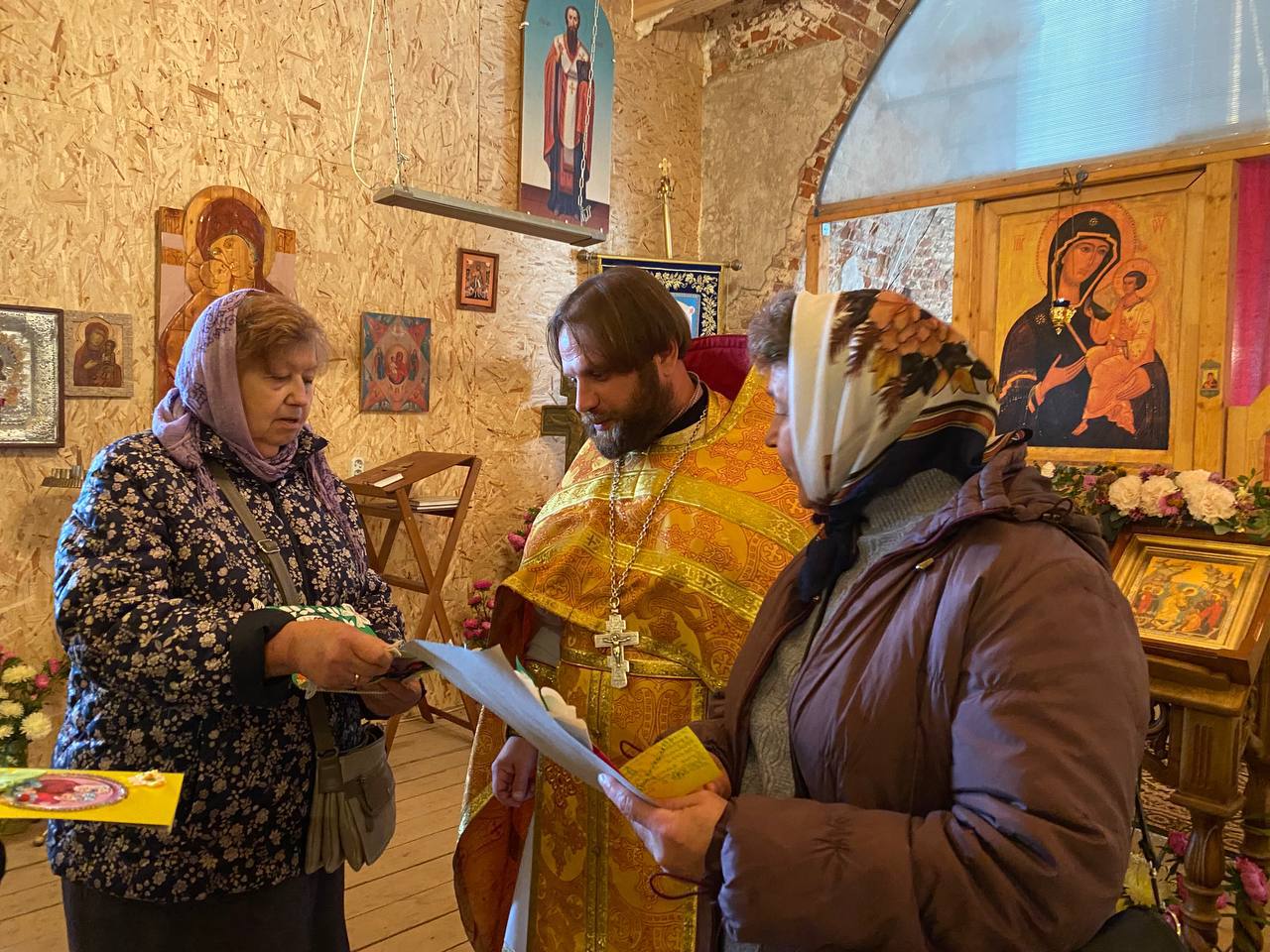 После воскресной литургии священник Димитрий Пищерков, настоятель храма Рождества Пресвятой Богородицы в д.Шитьково, поздравил наших пожилых прихожан и вручил подарки от детей.