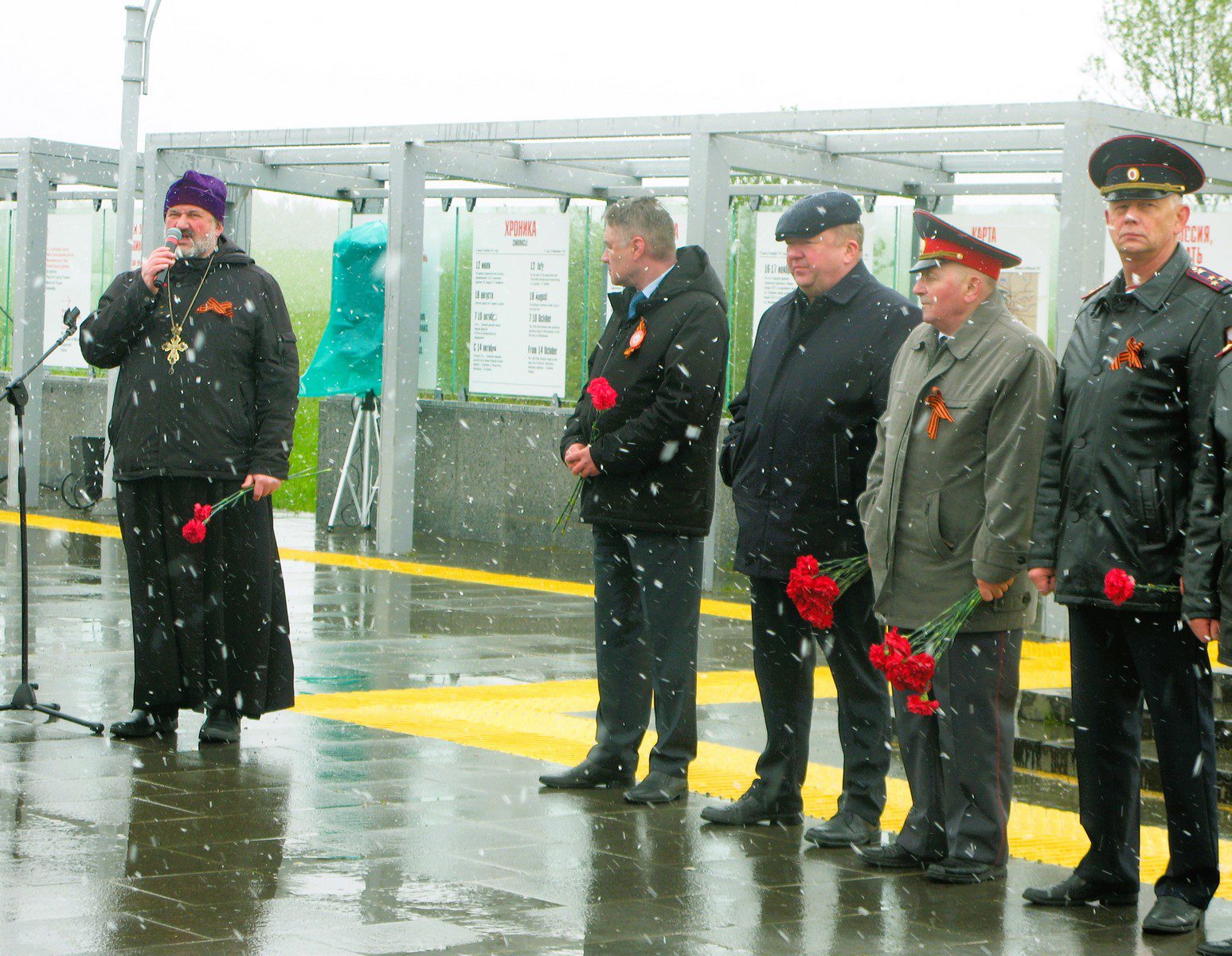 Участники торжественного события выступали со словами памяти и благодарности в честь героев-участников боёв в 1941 году в Волоколамске, у разъезда Дубосеково.