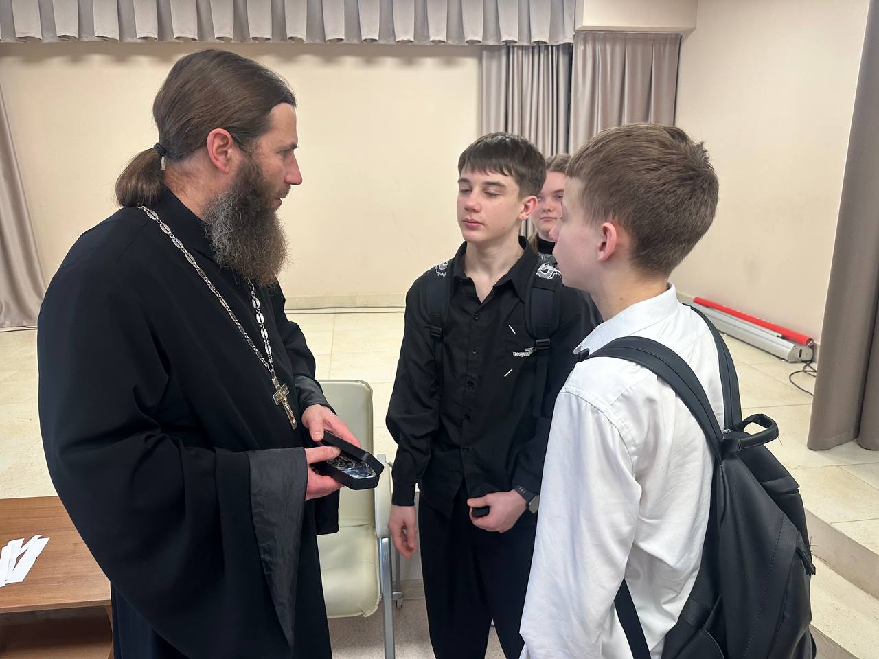 Батюшка рассказал историю праздников Рождества Христова и Крещения Господня, а также о традициях, связанных с этим святочным периодом. Затем отец Александр ответил на многочисленные вопросы ребят.