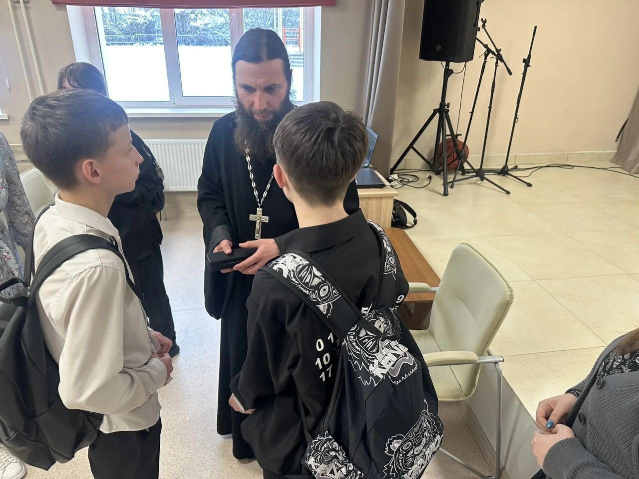 22 января благочинный Шаховского округа, настоятель Всехсвятского храма п. Шаховская протоиерей Александр Ковтун, посетил СОШ № 1 п. Шаховская, где в рамках Рождественской миссионерской акции провел беседу со школьниками.