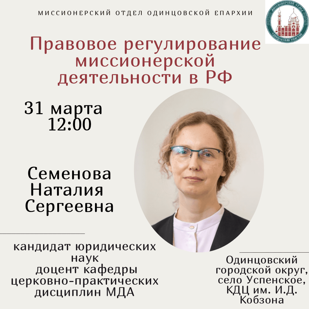 Миссионерский отдел Одинцовской епархии приглашает на семинар о правовых аспектах миссионерства